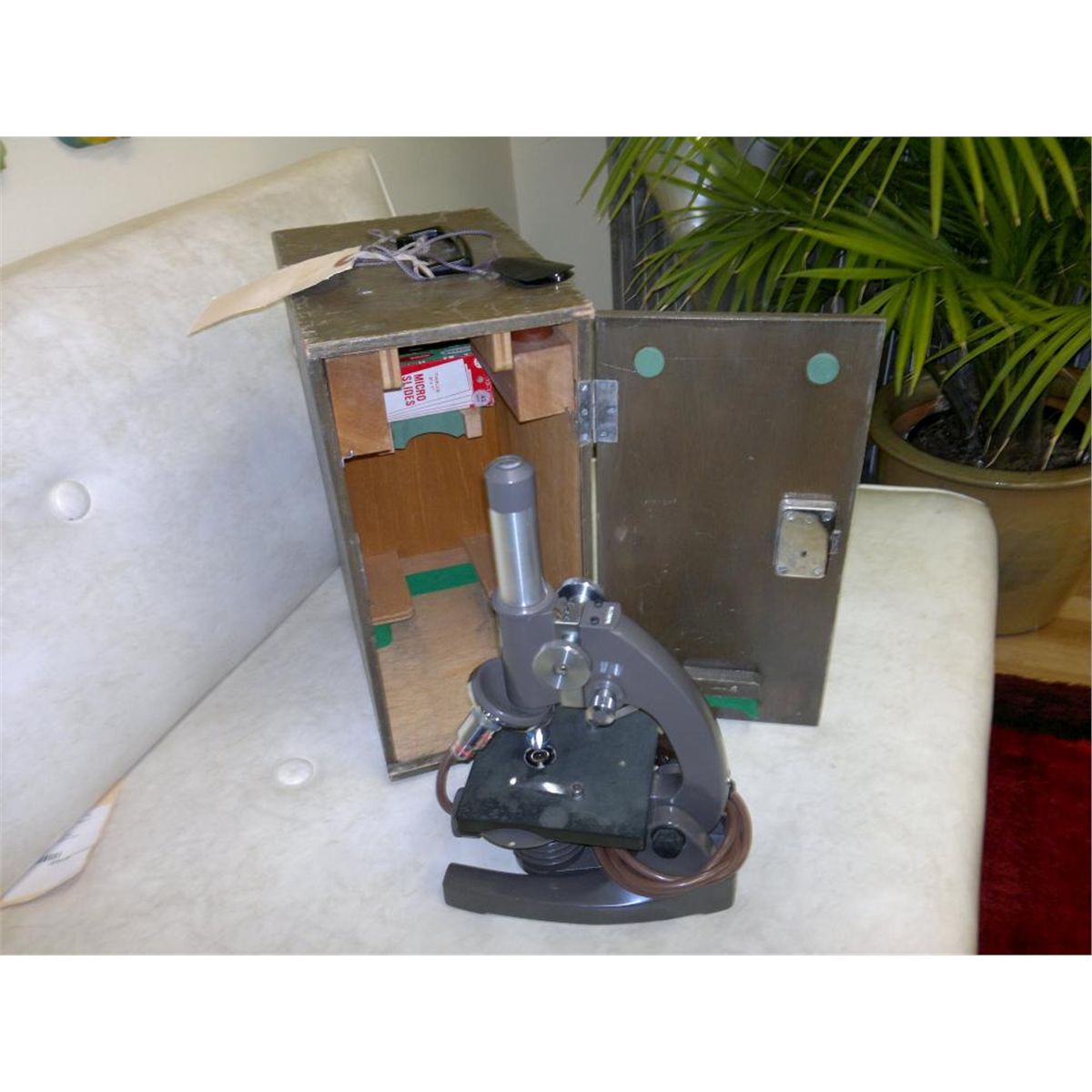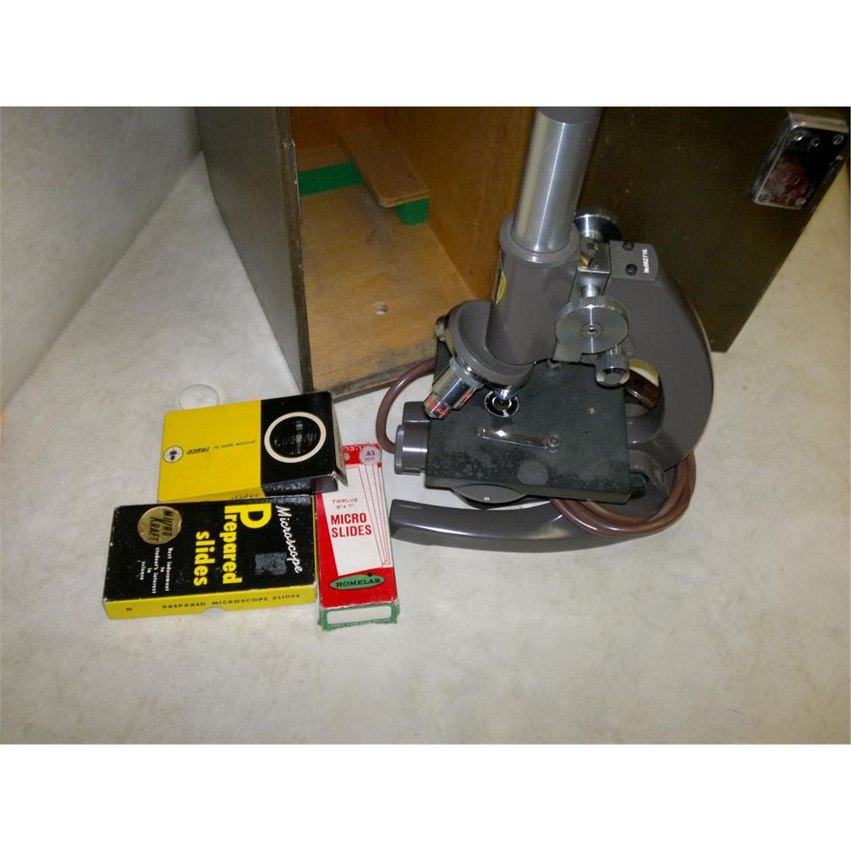 Swift 950 Microscope in original wooden case, 3 boxes of slides L 10 W 7 h 14