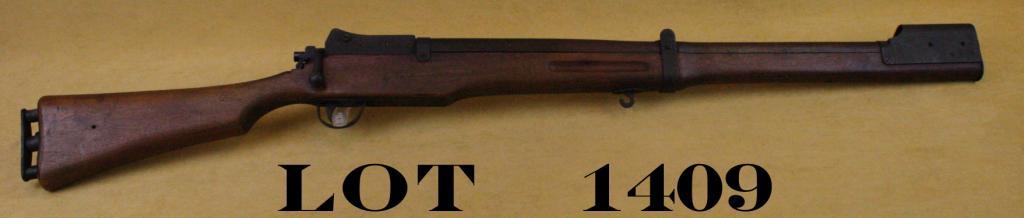 Swift training bolt-action rifle in the pattern of a No. 3 Mark I (Pattern 14) British military long arm in overall out-of-the-attic condition, approx. 47” overall with a dark patina on metal surfacesand overall good wood stock with some scattered mars and scratches from storage. A great variation for the serious British firearms collector. Est.: $200-$400.