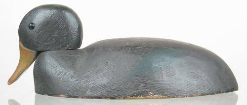 Swimming bobtail black duck decoy from Ohio or Michigan. In fine OP. Excellent example of folk art. (decoy)