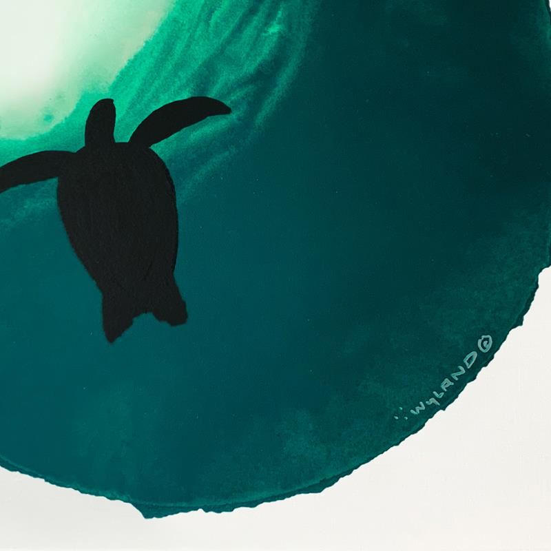 "Swimming in the Light" is an original painting, watercolor on deckle edge paper by Wyland. Hand signed by the artist, the piece comes custom framed and with a letter of authenticity. Measures approximately 30" x 30" (framed), 19.5" x 19.5" (image). This item requires special handling and may have a longer than usual turnaround.