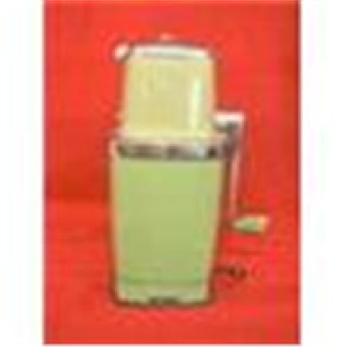 Ice crusher is marked "Swing A-Way" and is avocado green with silver trim. It is the hand crank type and suctions to the table or bar. This ice crusher measures 10 inches high and 3.5 inches wide and is in very good condition. Ca. 1960