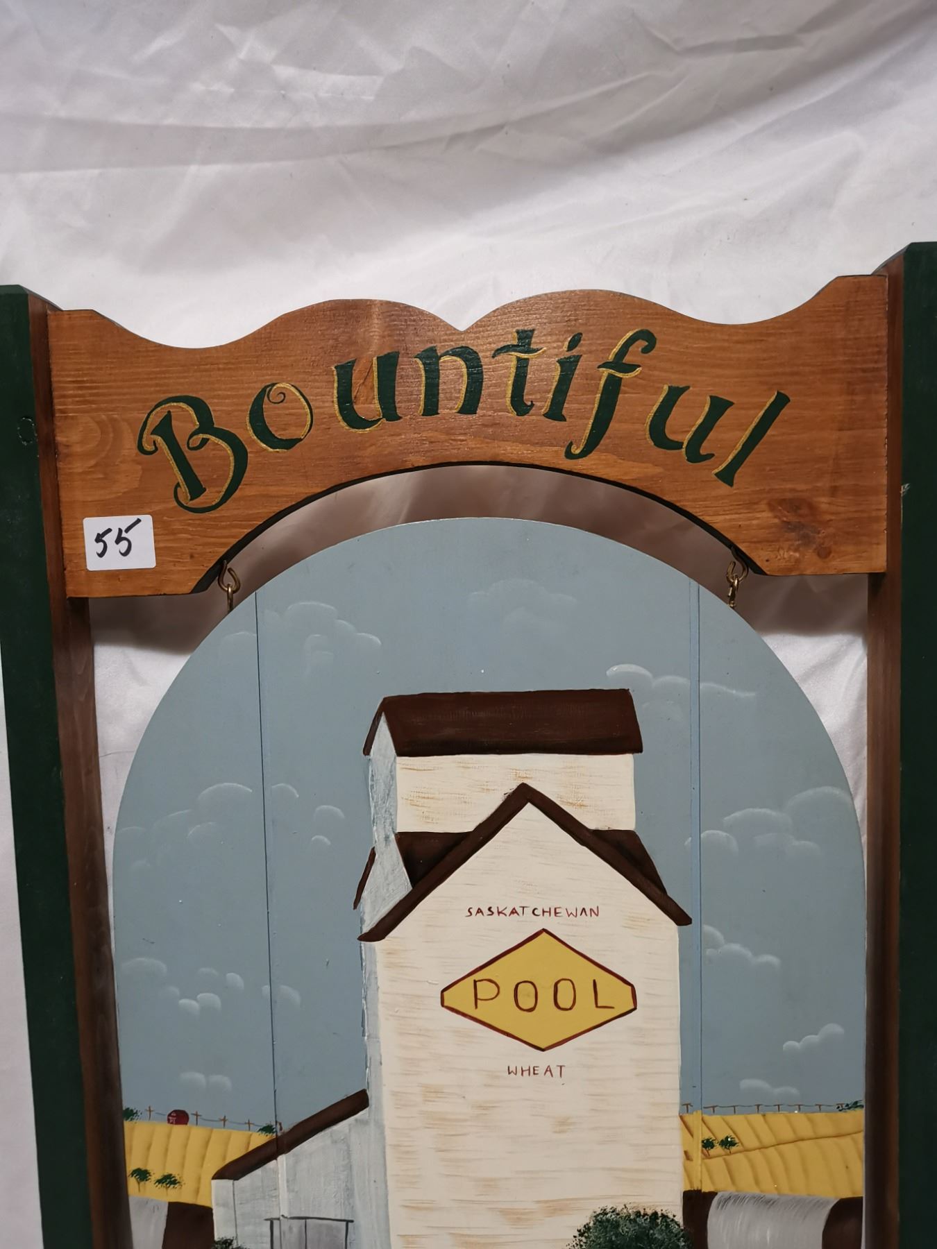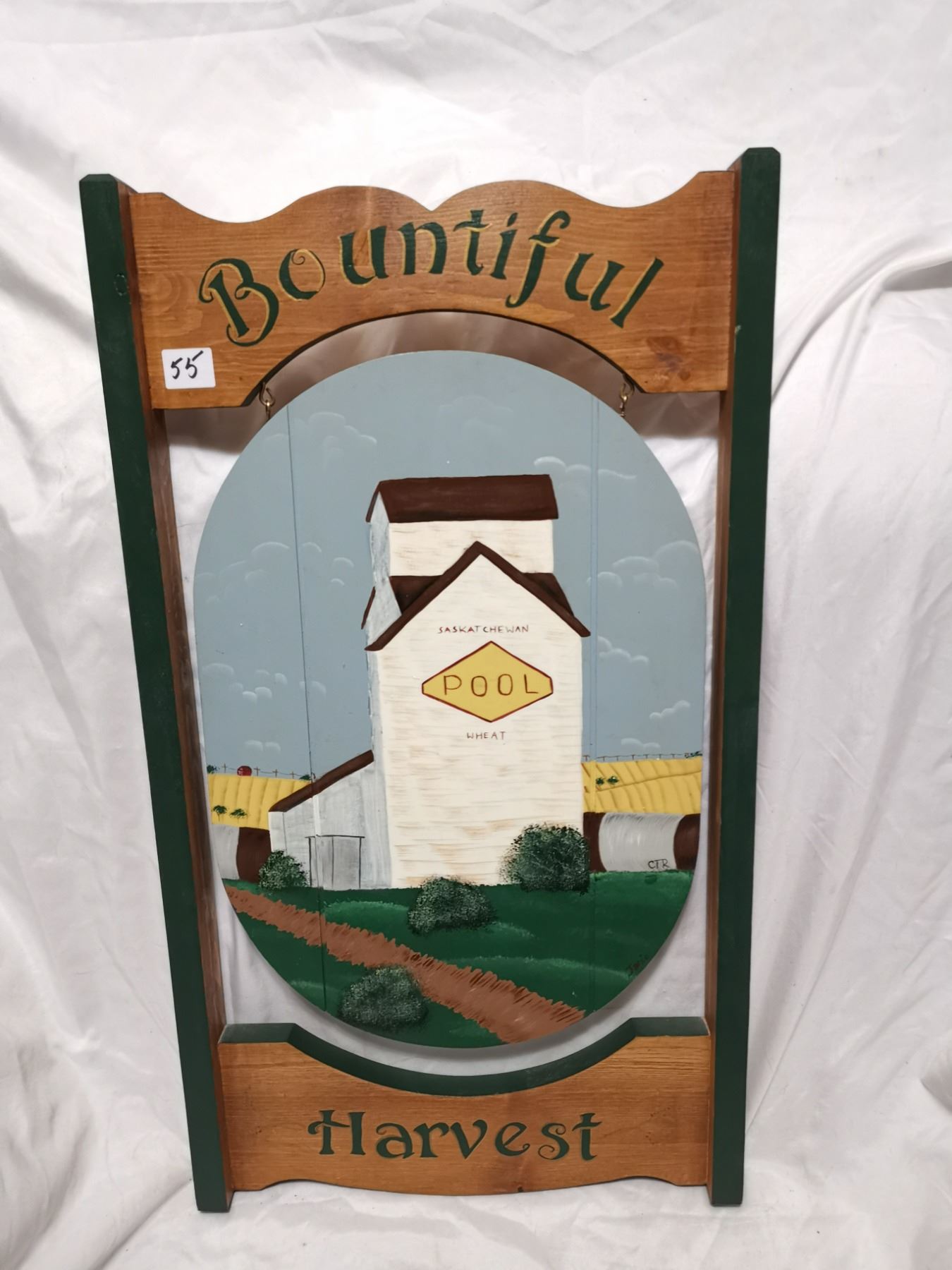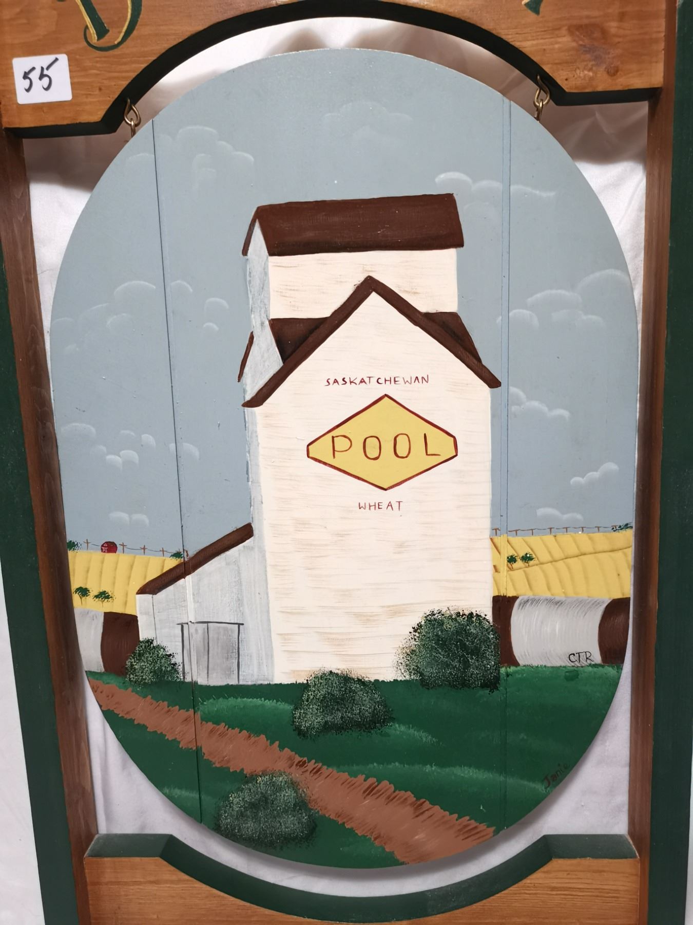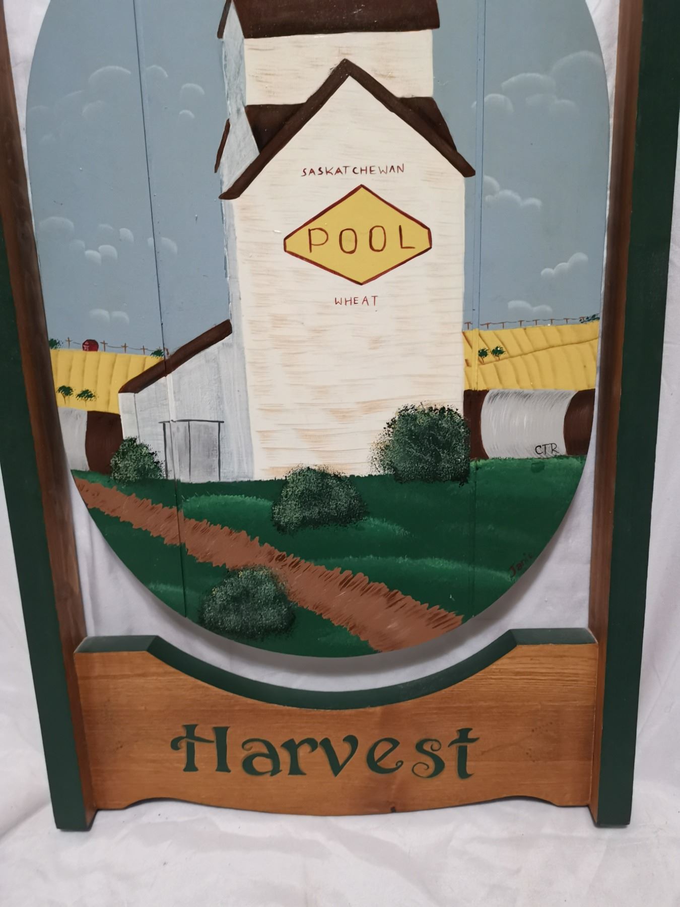 Swinging wooden Sask Wheat Pool sign 13"x23"