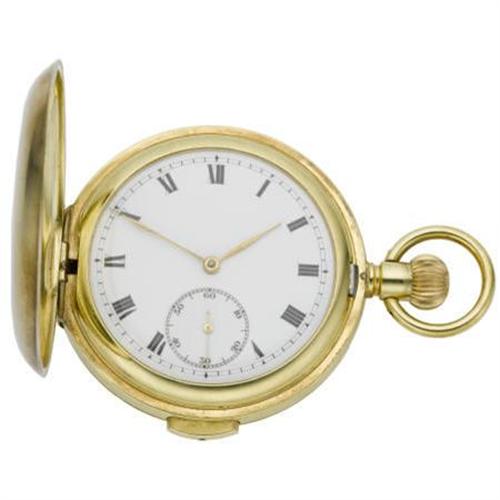 <B>Swiss 1/4 Hour Repeater, circa 1895</B></I> A nicely made gilt three quarter plate movement is featured with a lever escapement and repeat mechanism activated from a push piece on the case rim. The case is plain polished with an inner dust cover. The classic enamel dial comes with Roman numerals a black minute track and gold leaf hands.<BR><BR><b>Shipping:</b> Miscellaneous Collectibles, Smal (<a target="_blank" href="http://www.heritageauctions.com/common/shipping.php">view shipping information</a>)