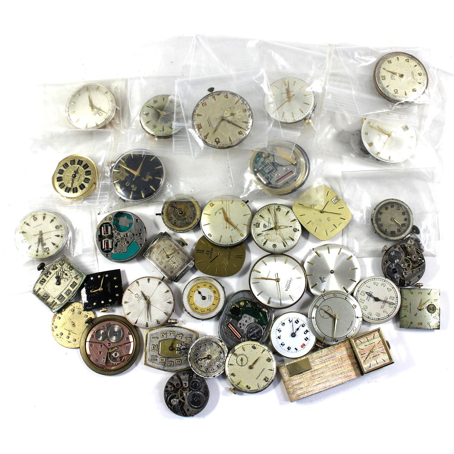 Thirty-Six (36). Swiss and American. 1930s-1960s. Omega, Doxa, Girard-Perregaux, Eternamatic, Accutron, Hamilton and many others. No cases. Ranging from 20mm to 30mm in diameter. Untested for functionality. Running watches have not been tested for timekeeping accuracy and may require adjustment. The fact that a watch has been described as "running" provides no guarantee of its ability to continue to do so.