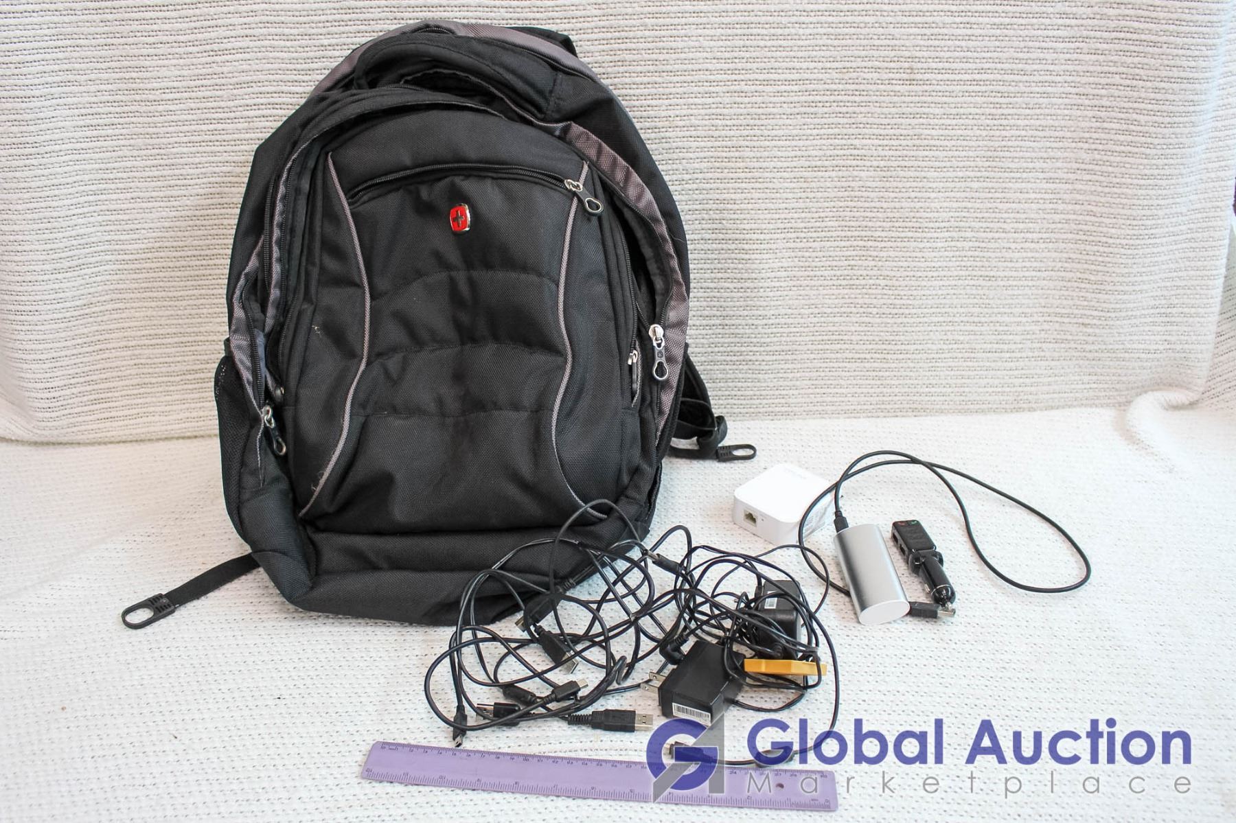 Swiss Army Backpack w/Misc Charge Cords, (Bluetooth FM Transmitter, Portable Wifi router, Portable Battery)