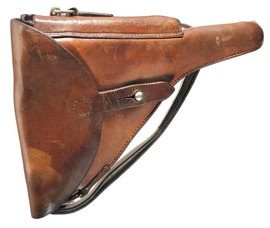 Very fine condition overall with 90% of the arsenal blue finish overall showing wear on the edge and high spots. The grips are also in very fine condition with nice distinct checkering and markings on both sides. The holster is in fine condition with a light brown color overall with clear markings on the back with tight stitching showing even honest wear overall. A nice complete 1929 Swiss Luger rig.