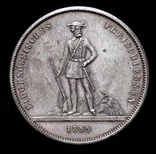 Svizzera - Confederazione - 5 Franchi 1859 ("Tiro federale" di Zurigo)