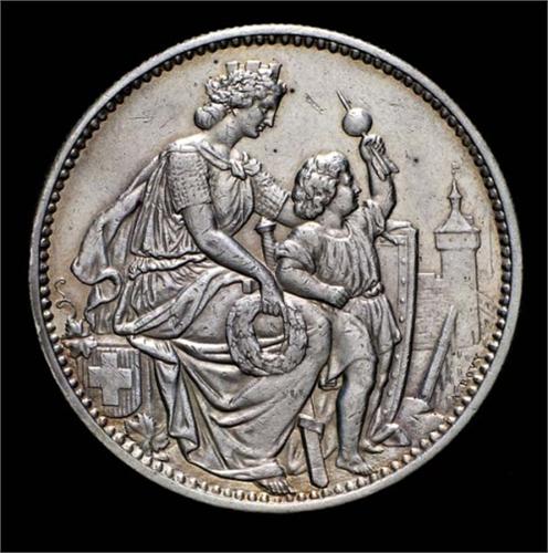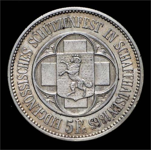 Svizzera - Confederazione - 5 Franchi 1865 ("Tiro federale" di Schaffausen)