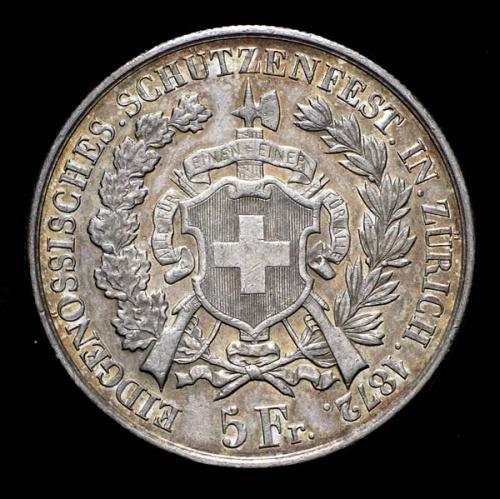 Svizzera - Confederazione - 5 Franchi 1872 ("Tiro federale" di Zurigo)