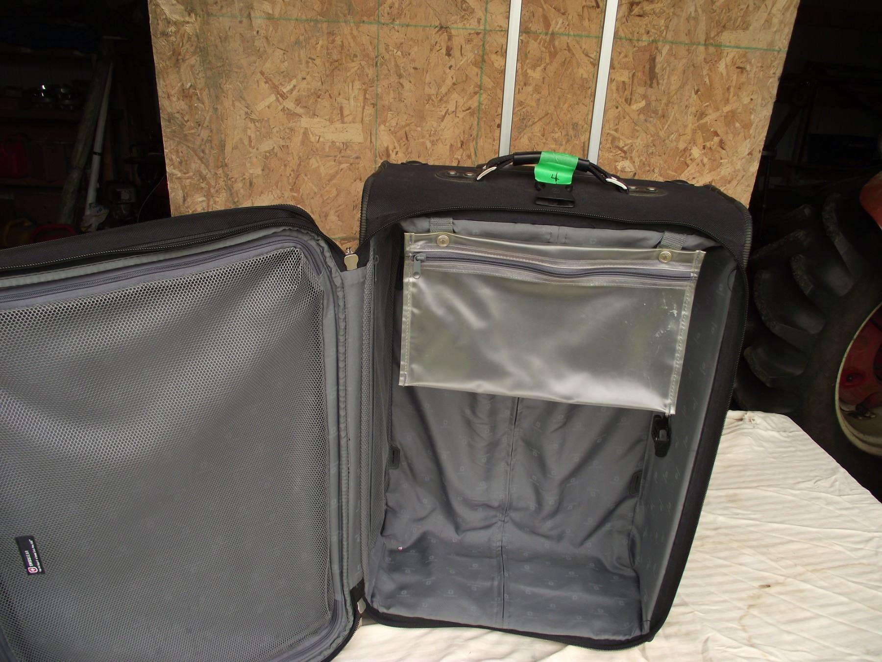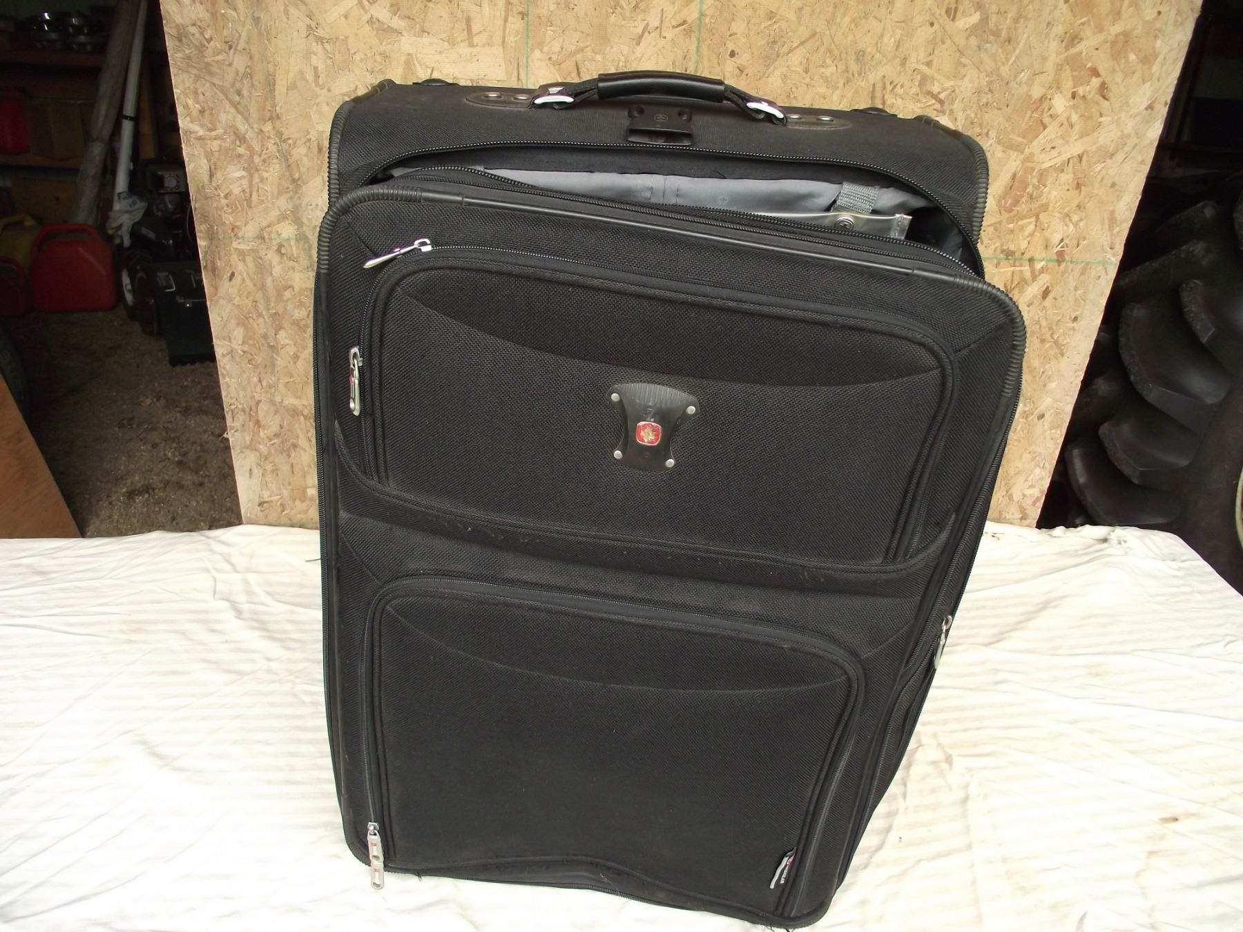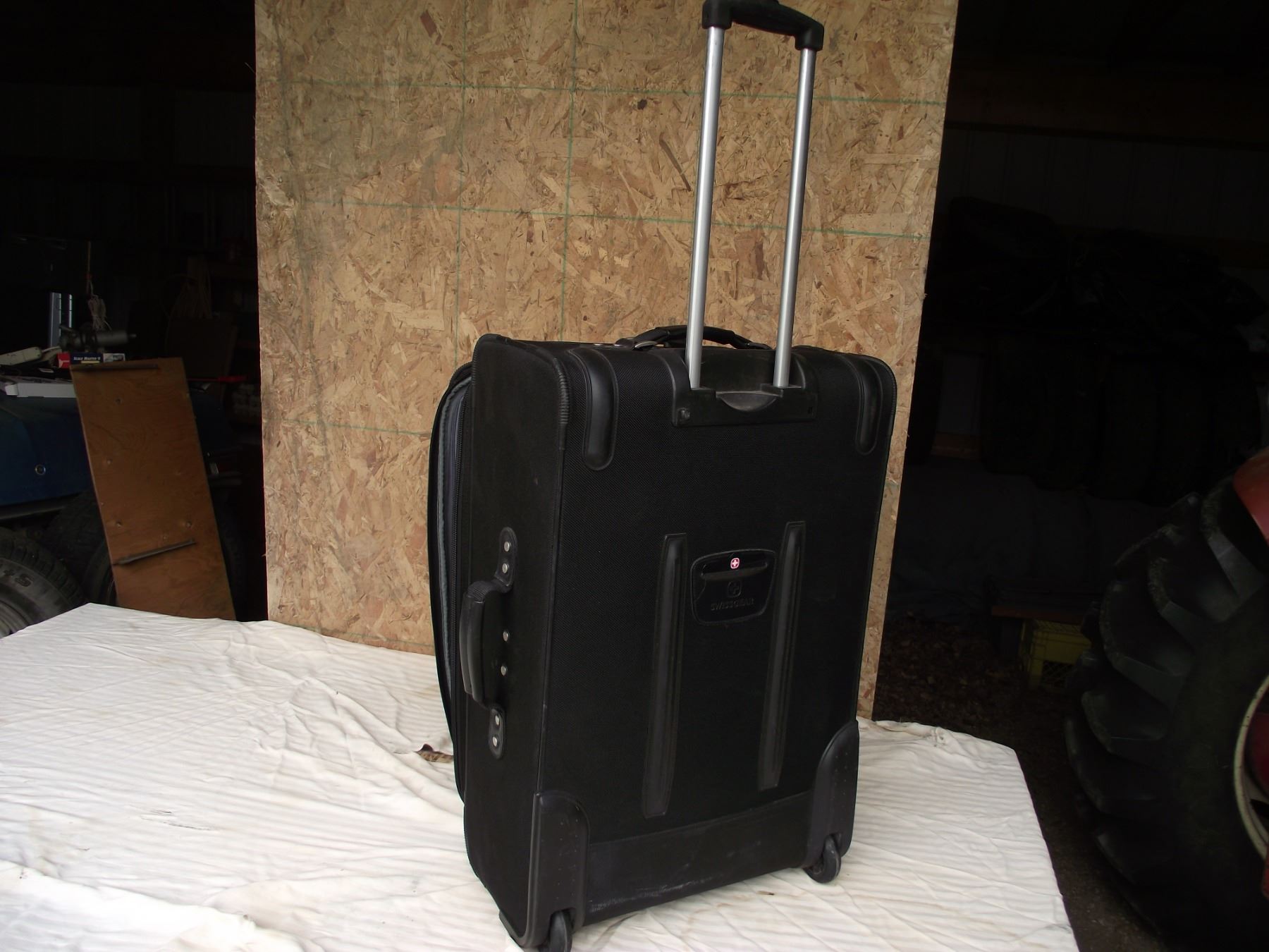 Swiss Gear suit case. Very nice clean shape with wheels and extendable tow handle.