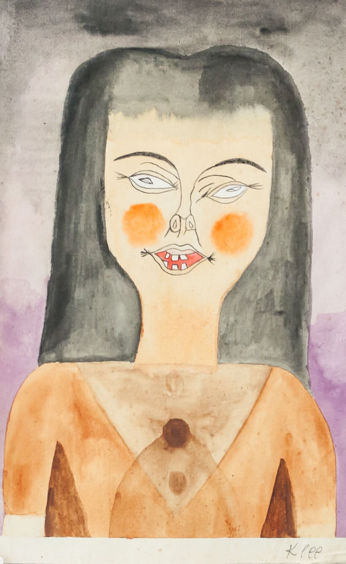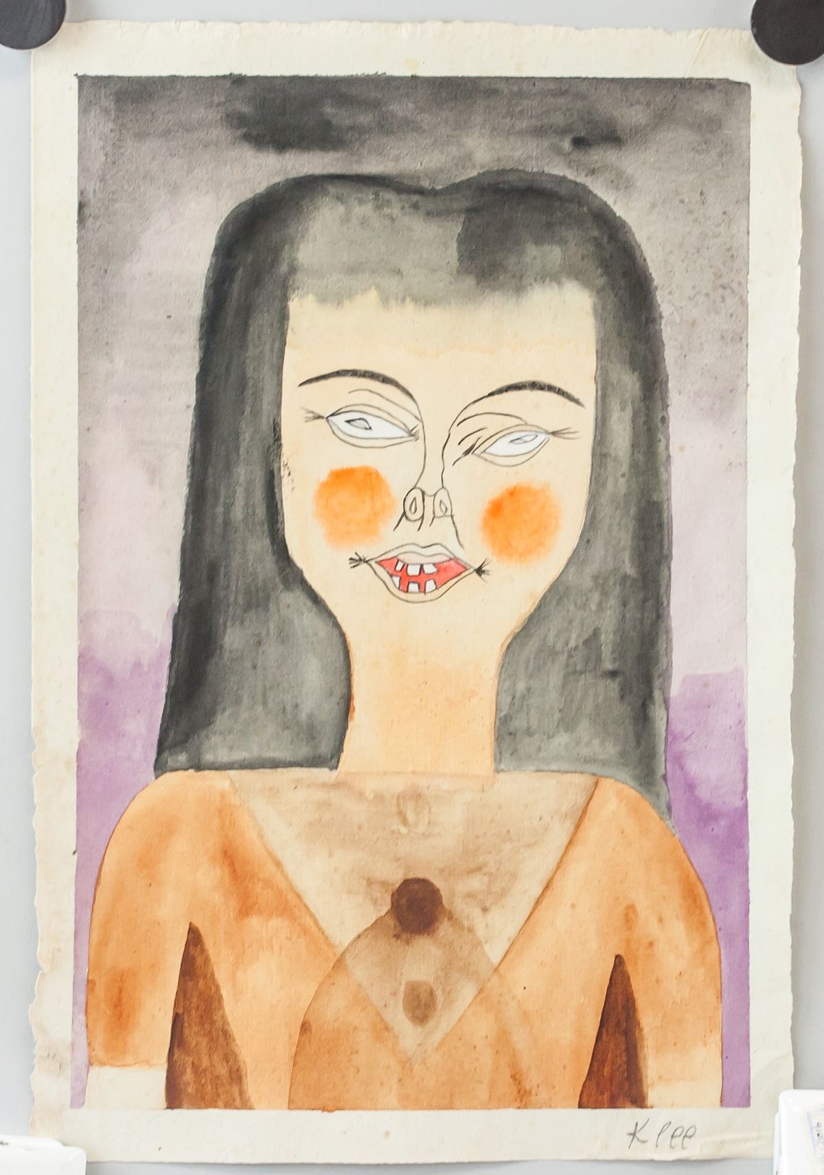 Mixed media on paper. Featuring portrait of a woman. Signed "Klee" in the bottom right corner. "ISAAC VON GRAF PRIVATSAMMLUNG" stamped on verso. 32 x 21 cm (12.5 x 8.25 inches).