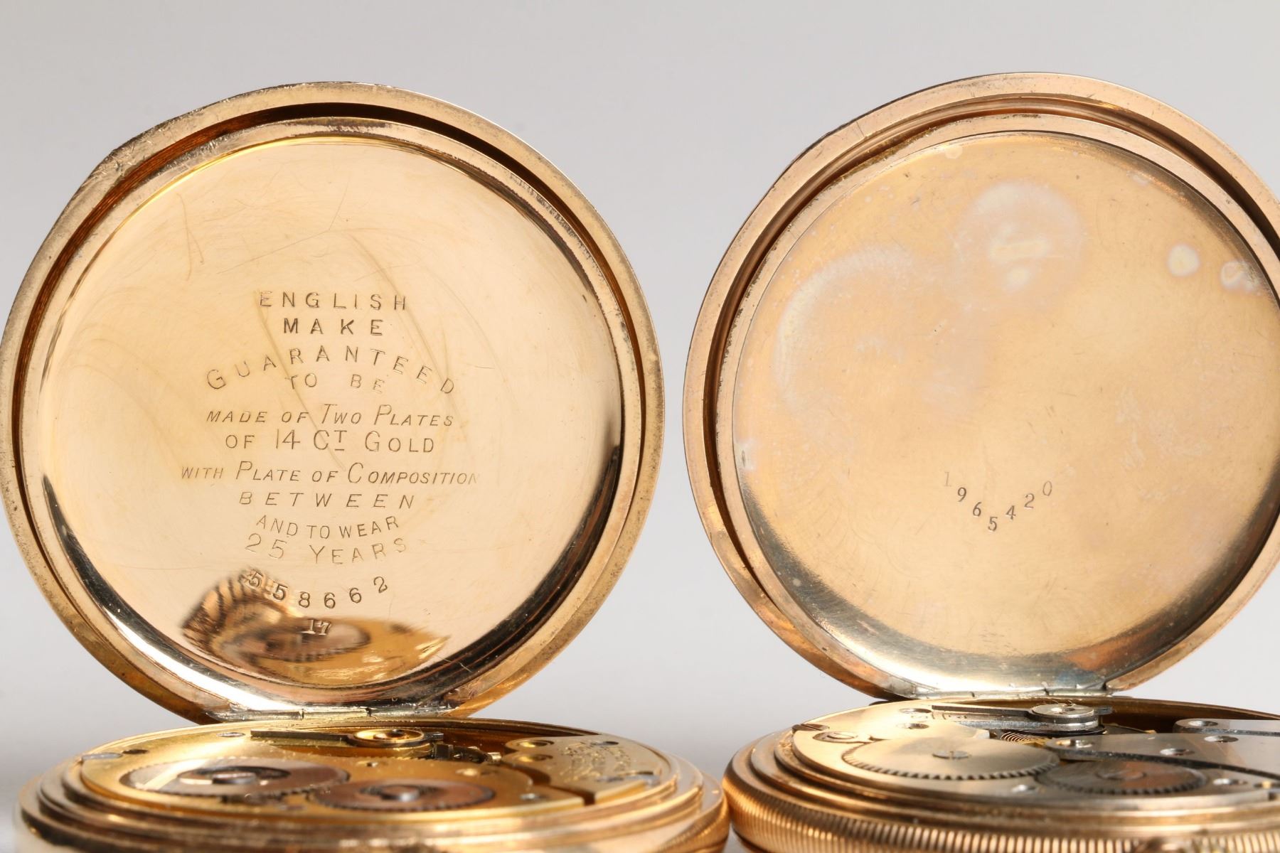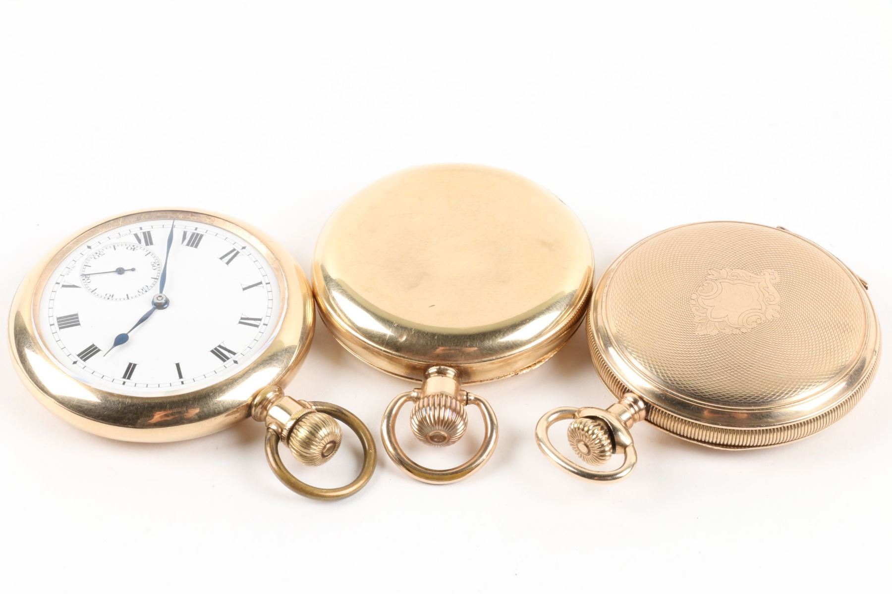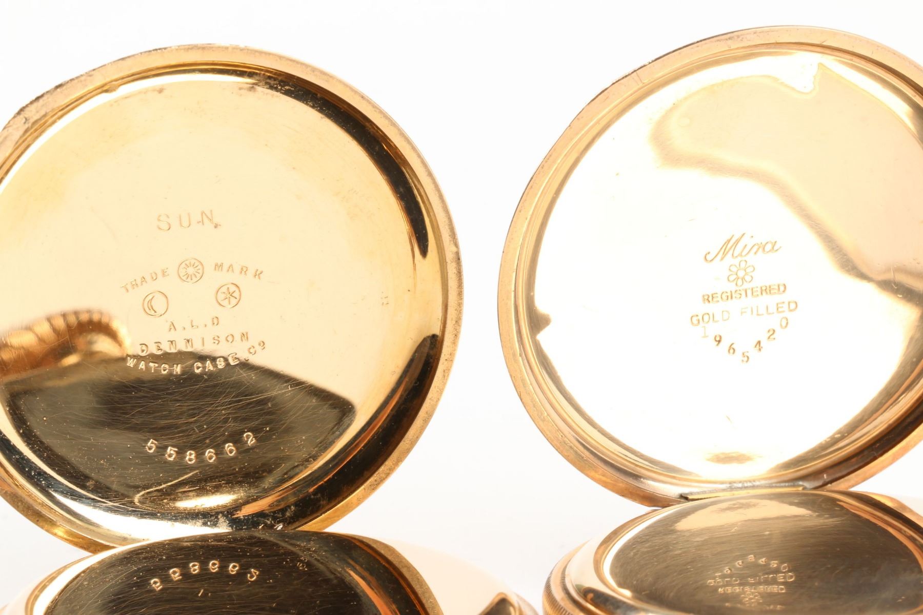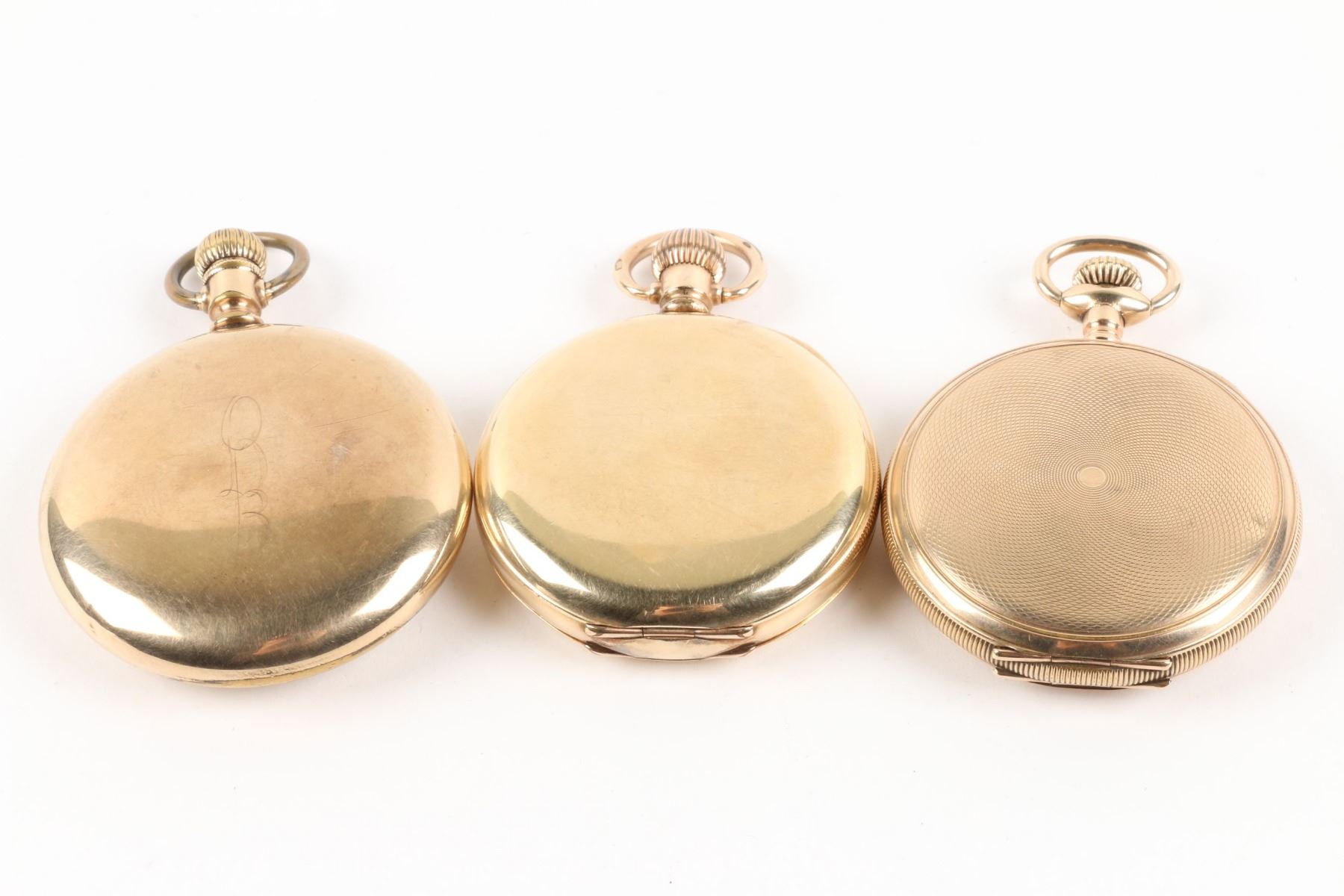 QUANTITY: 3. CASE MATERIAL: Gold Filled. SIZE: 16 Size. GROSS WEIGHT: 347.9g. NOTES: One chain included.. EST. $200-300. DISCLOSURE: Watches were running at time of photography unless otherwise stated. Service history is unknown unless paperwork is provided. We cannot guarantee accuracy of any of the watches offered.