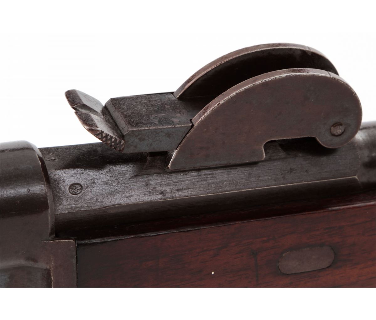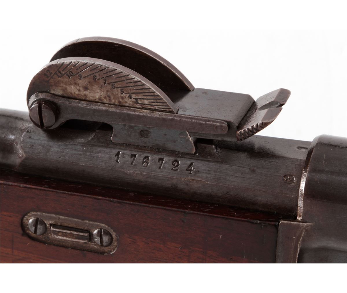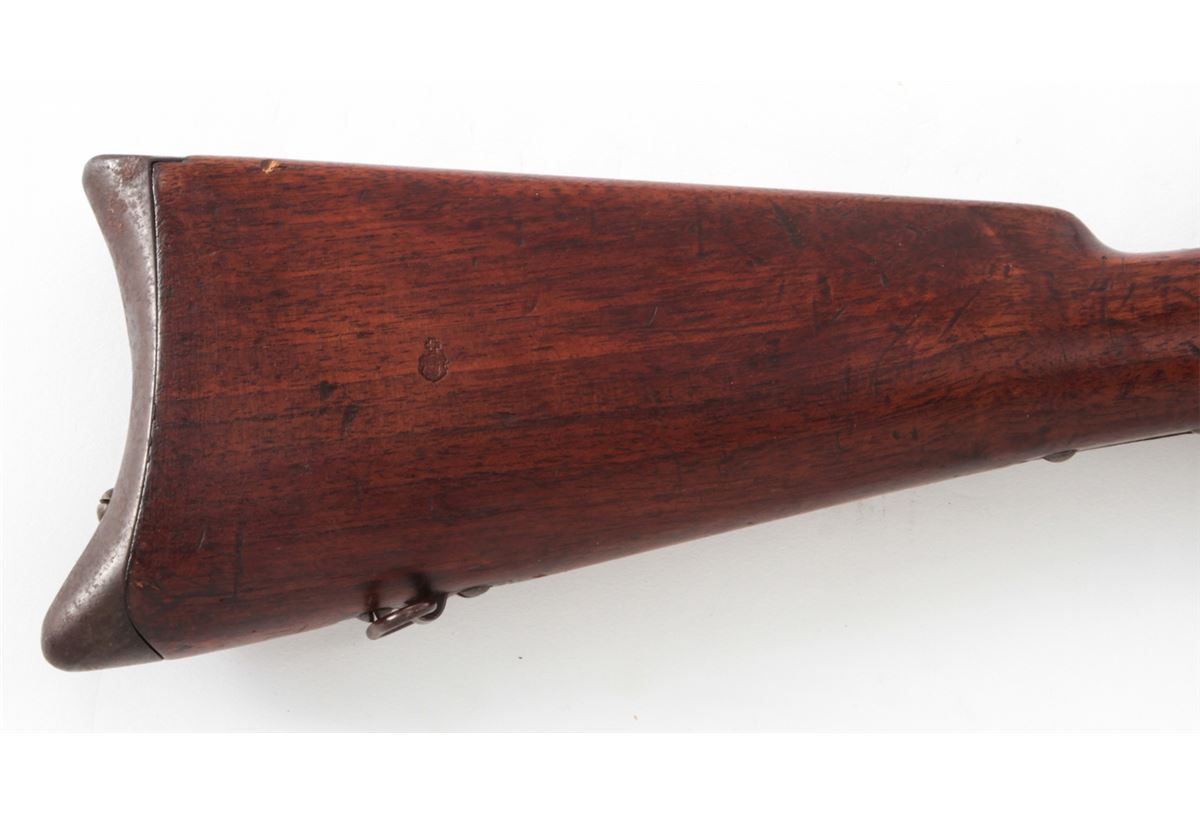 Swiss Model 1878 Bolt Action Rifle, by Waffenfabrik, Bern, #176724, 10.4x42R RF cal., 33'' barrel, blue finish, walnut buttstock and full-length forearm. Condition is very good with mild general toning to metal surfaces. Stock with bruises and scuffs. Action is crisp, bore is fine. Est.: $300-$500. (Antique)