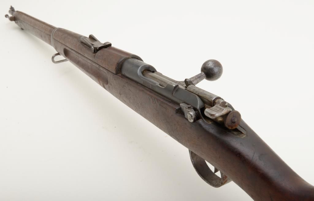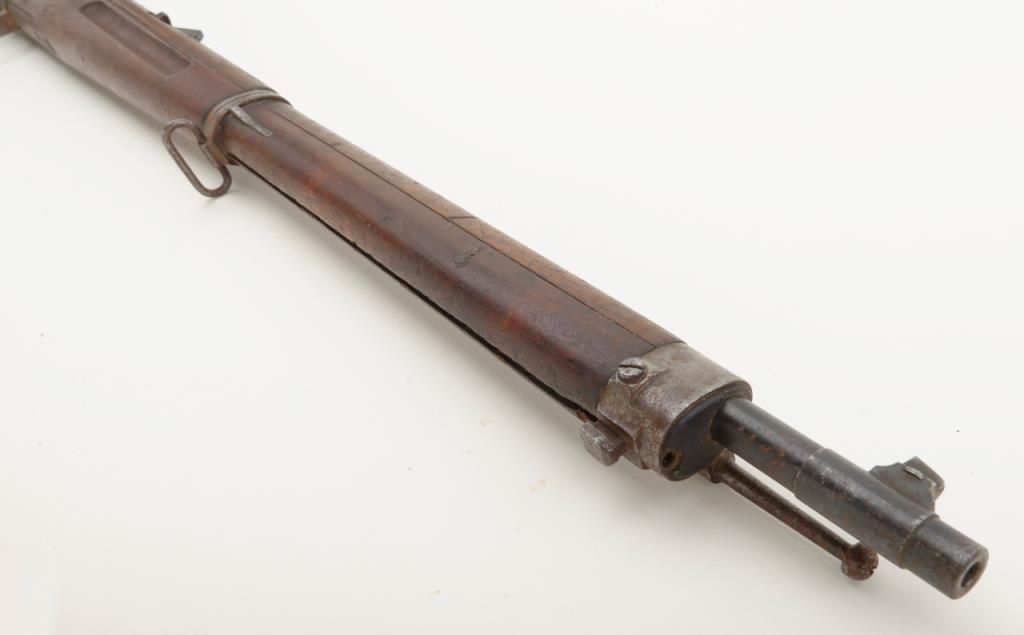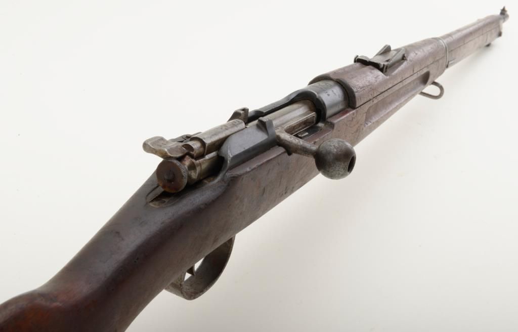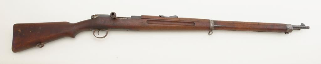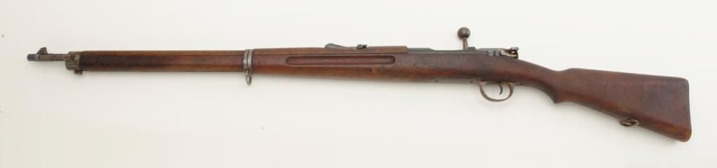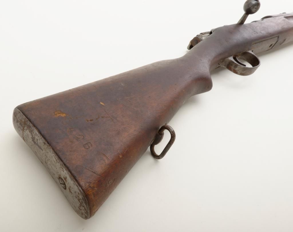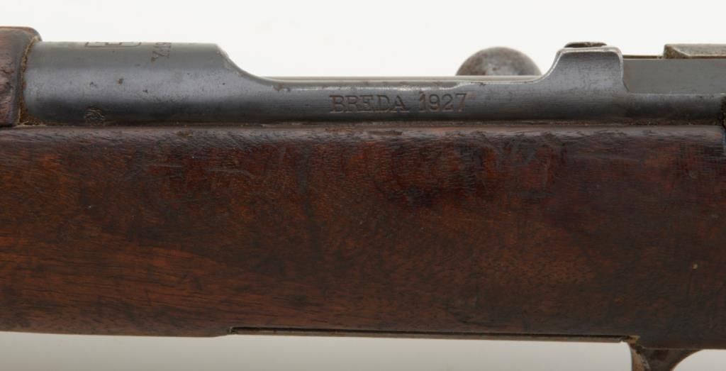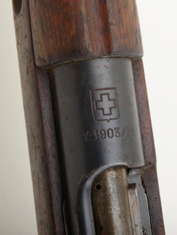 Swiss Model 1903/14 bolt action rifle marked “Breda 1927” on left side of receiver 6.5mm cal., 29” barrel, blue finish, wood stock, missing cleaning rod; #H 9426 in overall un-cleaned good condition with considerable muted blue finish and scattered surface rust; good bore, action and markings; wood stock is overall fair to good; would improve with careful cleaning and oiling. (C&R). Est.: $100-$300.