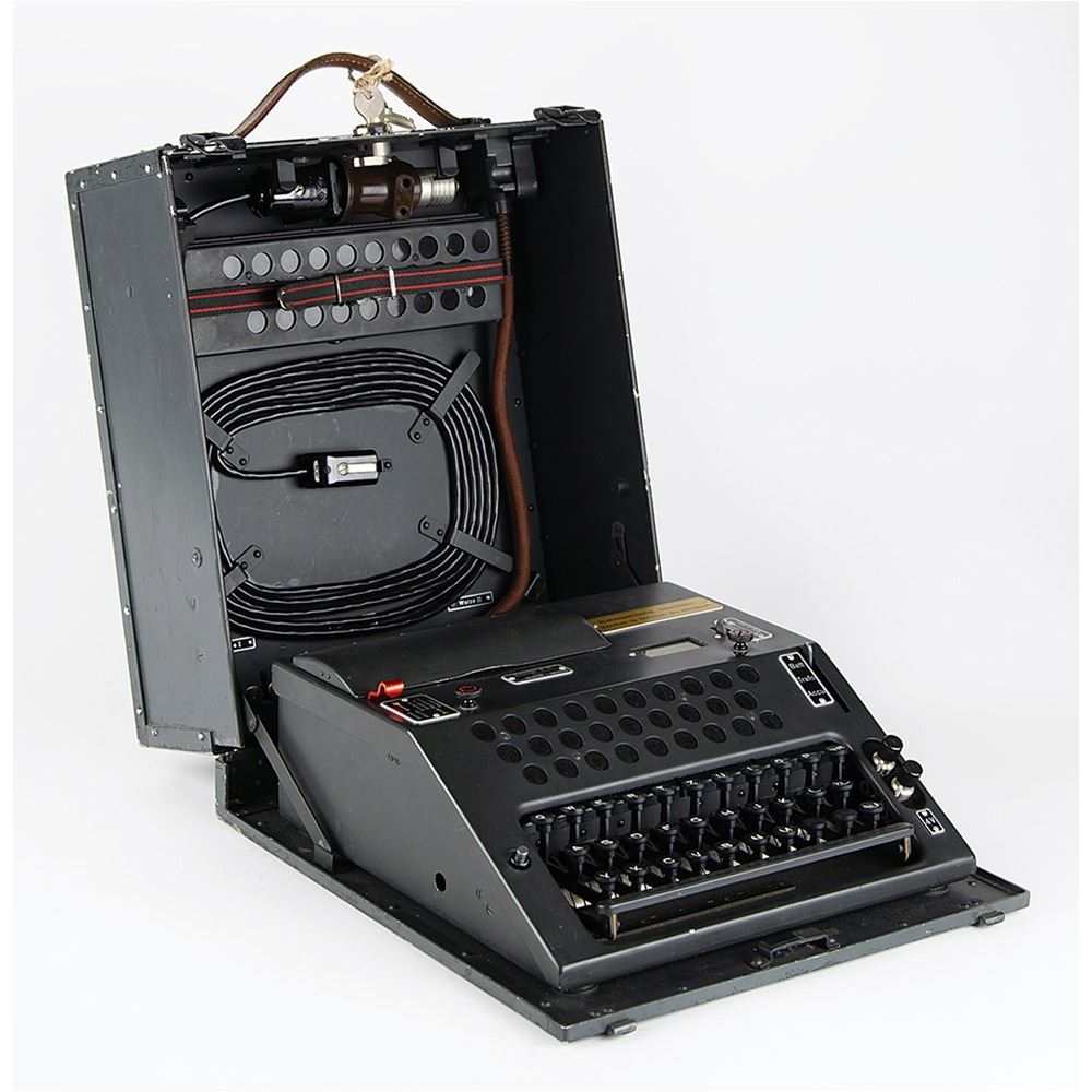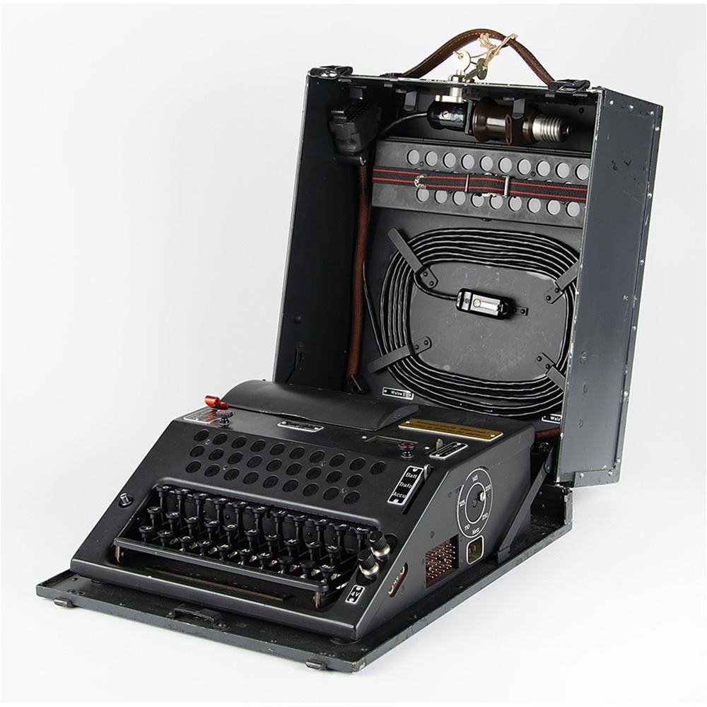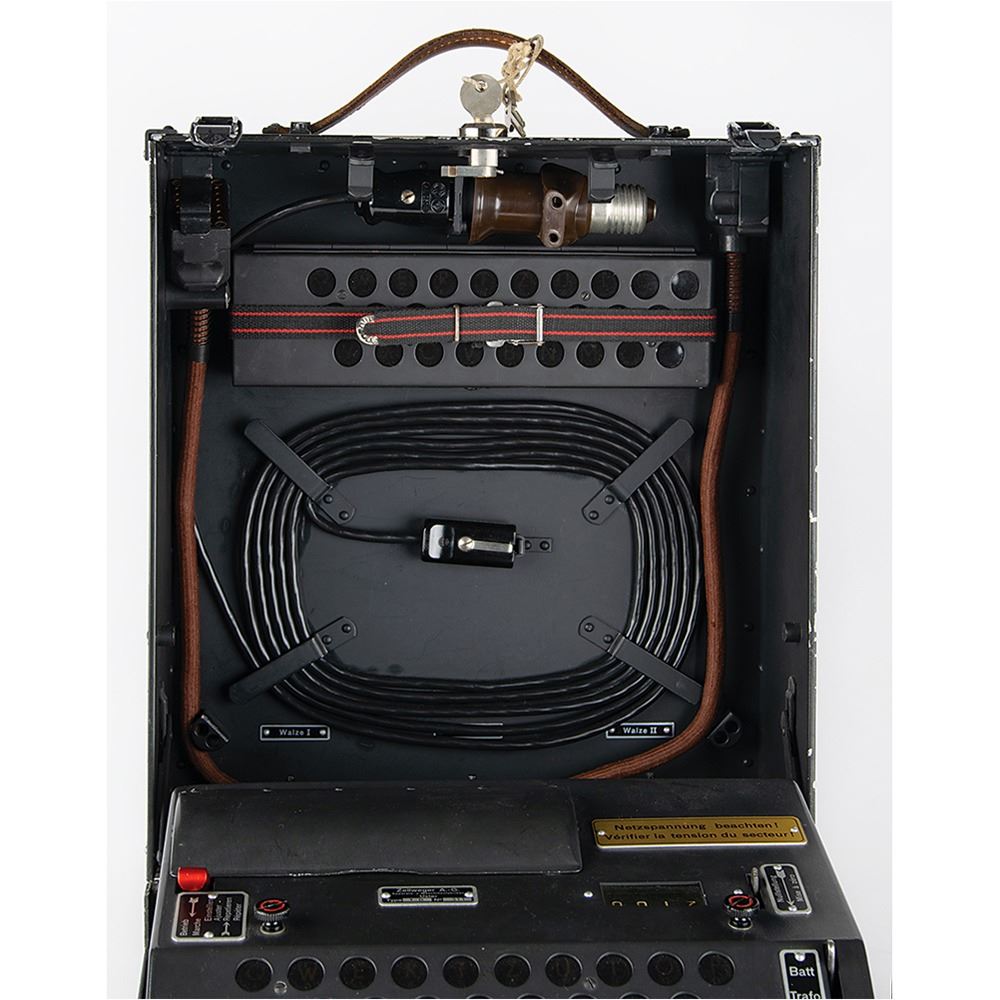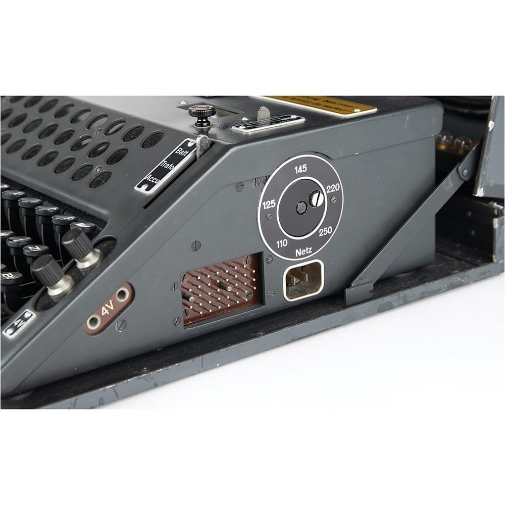 Original Swiss NEMA Model 45 cipher machine, serial no. TD-311, developed by Zellweger AG in Uster, Switzerland, during World War II as a replacement for the German Enigma Model K that was being used by the Swiss Army. The machine is also known as T-D, which stands for Tasten-Drücker Maschine (key-press machine).