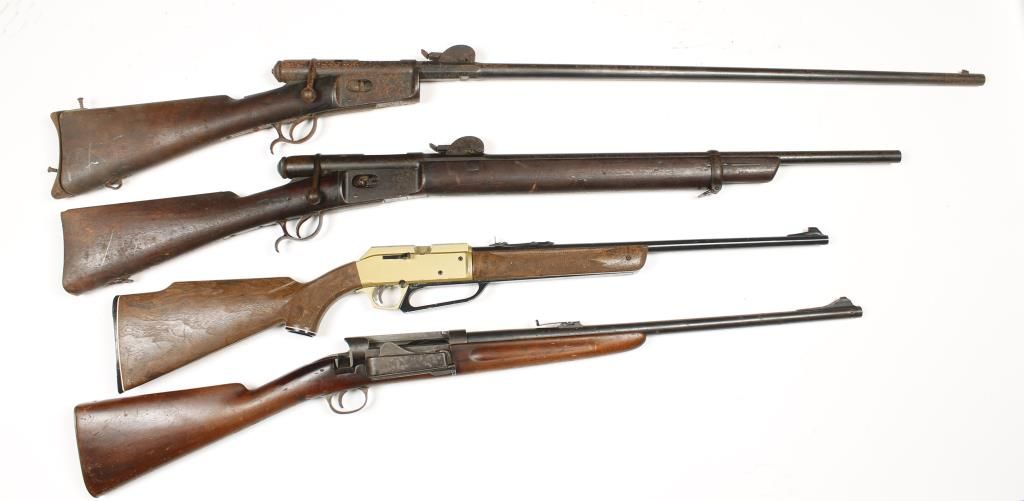 With cut down stock and barrel. And Swiss Verterli missing forend. And Springfield 1898 Krag 30-40 missing bolt, cut down drilled and tapped. And Ted William 799 BB Gun. *Antique Firearms*