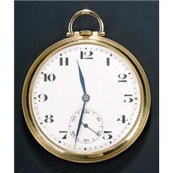 Swiss, a 9ct gold slim open face pocket watch, hallmarked London 1938, the silvered dial, with black Arabic numerals, blued steel hands and subsidiary seconds dial, three piece snap case, Swiss 15 jewel movement with split bimetallic balance and overcoil balance spring