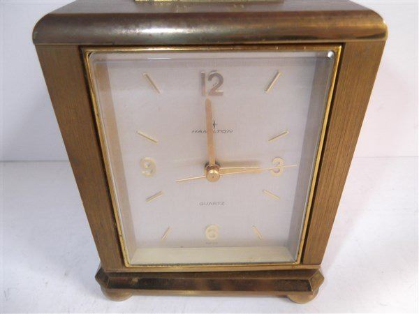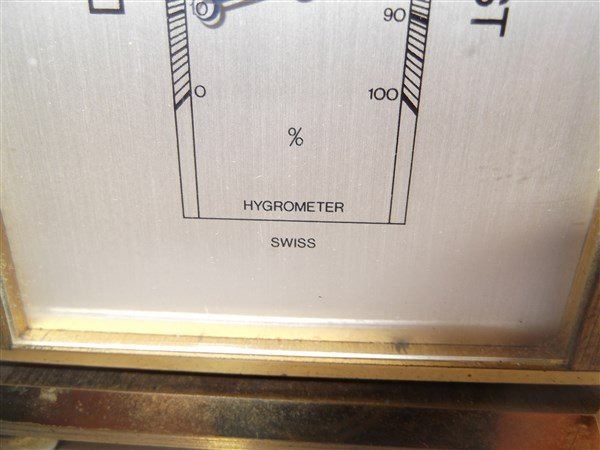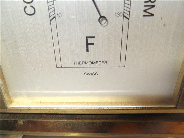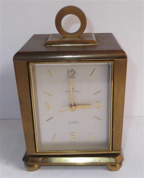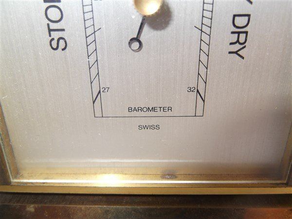Swiss made Hamilton Quartz clock with Hydrometer, Barometer, & Thermometer. Also dated May 25, 1955 & monogrammed. 6 inches x 3 1/2 inches.