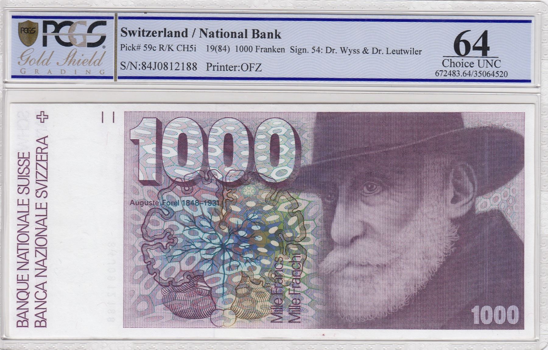 Switzerland, 1.000 Franken, 1984, UNC, p59cbr/PCGS 64, serial number: 84J0812188