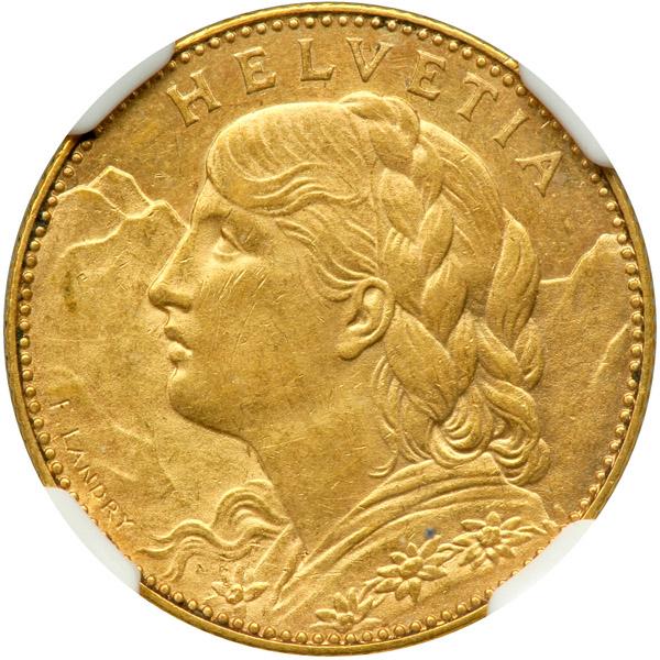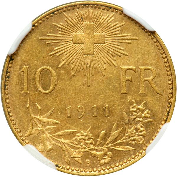 Switzerland. 10 Francs, 1911-B. NGC AU58