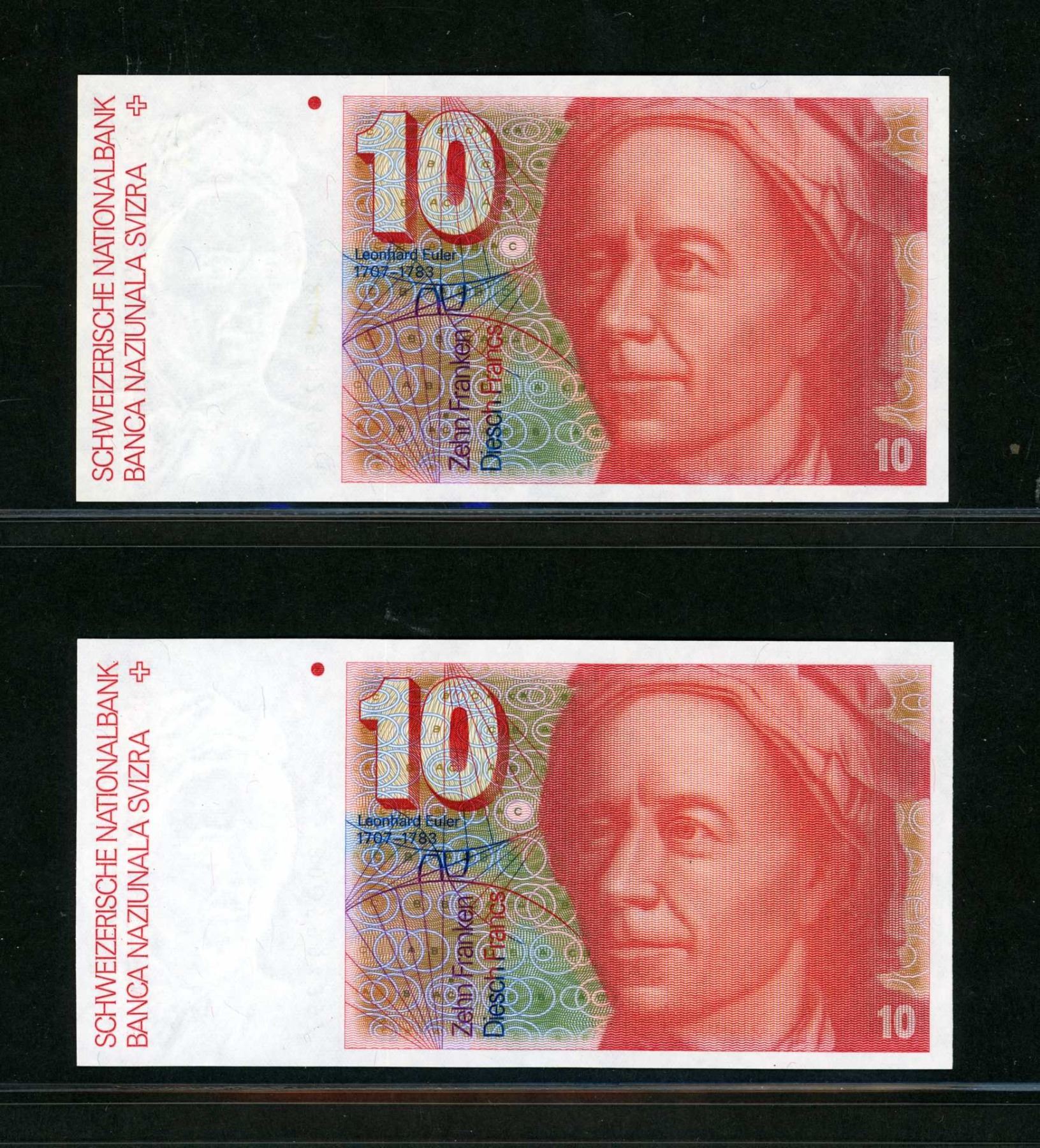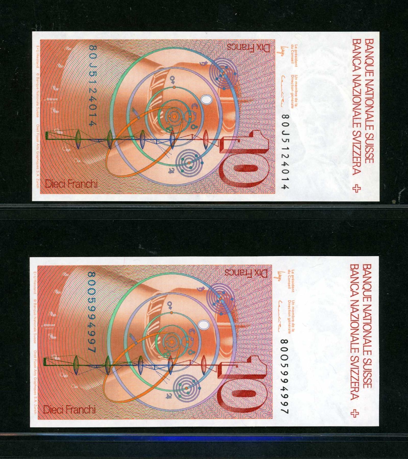 Switzerland 10 Francs 1980. A Pair of P-53b.54 Banknotes Ch-Unc