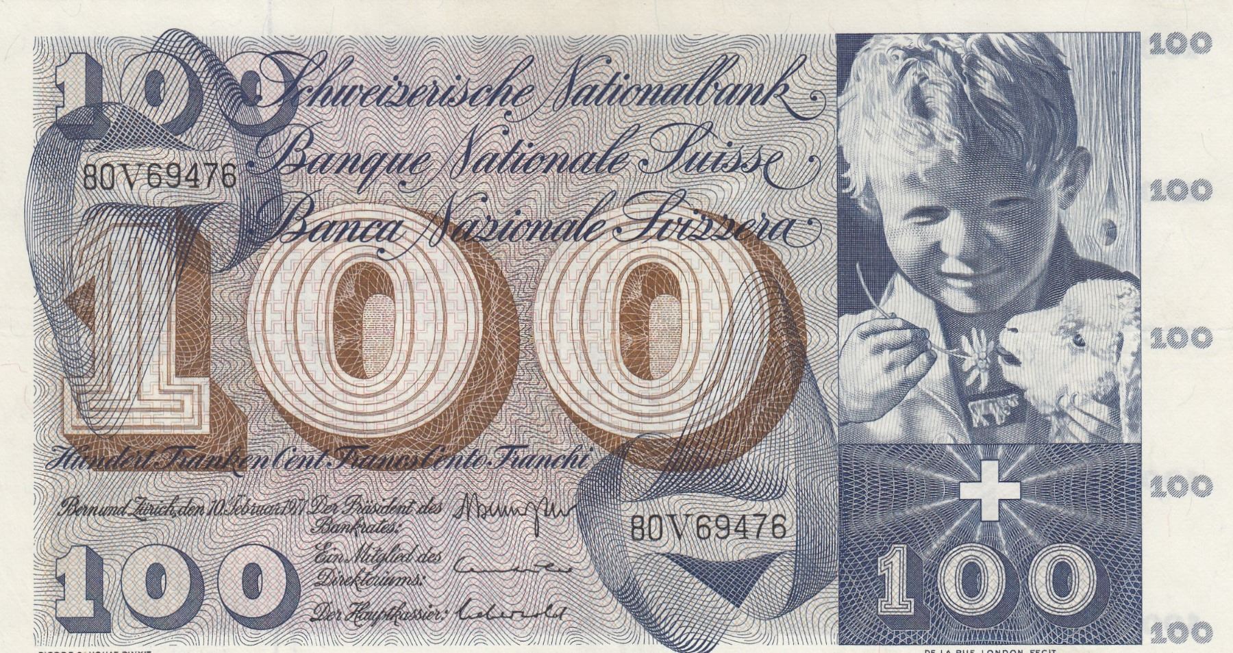 Switzerland, 100 Franken, 1971, XF (+), p49mbr/serial number: 80V69476