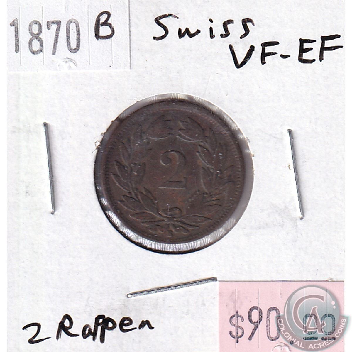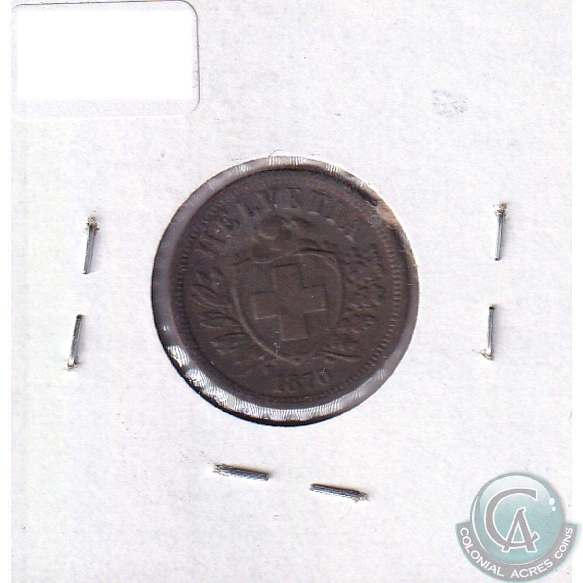 Switzerland 1870B 2 Rappen VF-EF (VF-30)