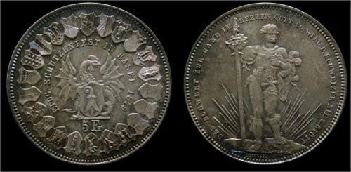 Switzerland 1879 5 FR, Basel PCGS MS63, A beautiful example with light bluish gold finish.