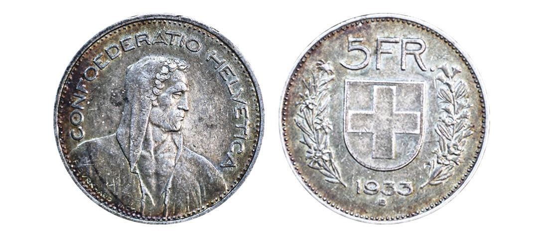 Switzerland, 1933, Silver 5 Francs, 15.00 gms