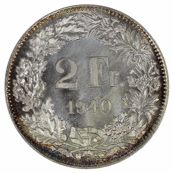 Switzerland 1940 B 'Specimen' 2 Franc, Gem with periperal toning