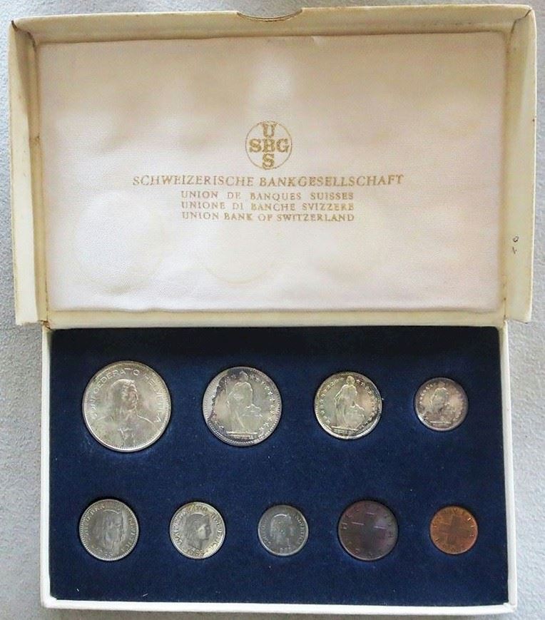 Switzerland; 1965 Union Bank of Switzerland 9 coin UNC Set. Housed in original white box.