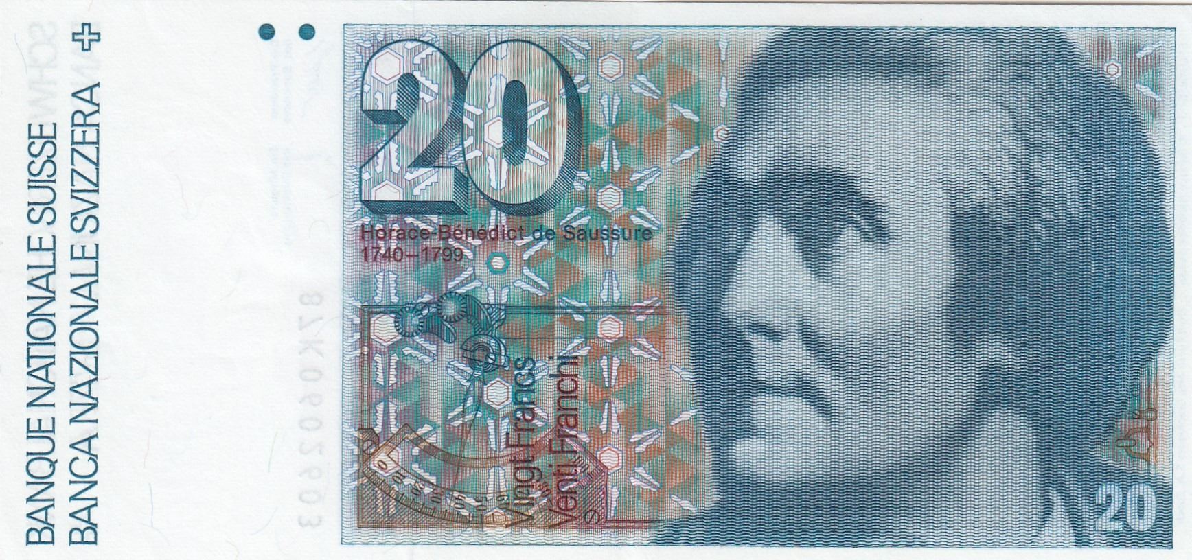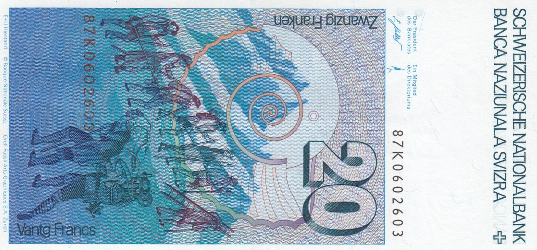 Switzerland, 20 Franken, 1987, AUNC, p55gbr/serial number: 87K0602603