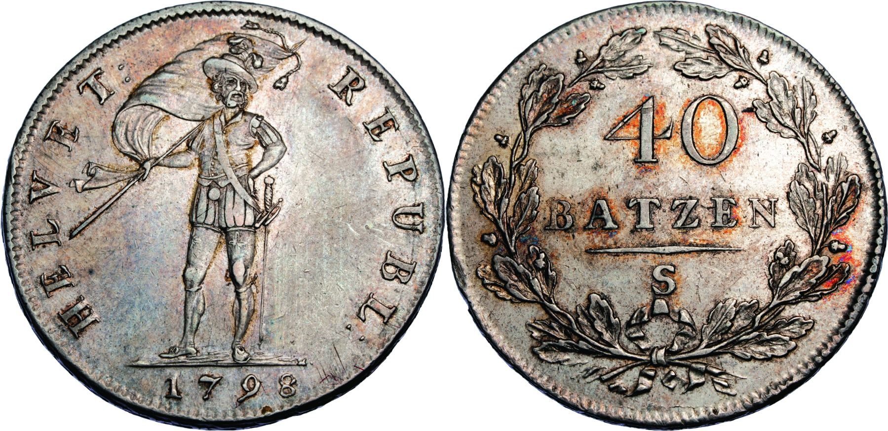 Switzerland, 40 Batzen Neuthaler 1798 S, Solothurn, AG 29.37 g. Ref : HMZ 2-1185a. Ah.2 Conservat