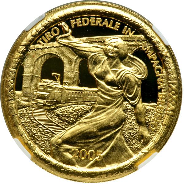 Switzerland. 500 Francs, 2005. KM-S70. Weight 0.4978 ounce. Mintage 150 pieces. For the Brusio Festival. NGC graded Proof 69 Ultra Cameo.