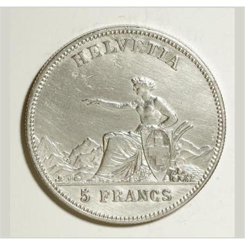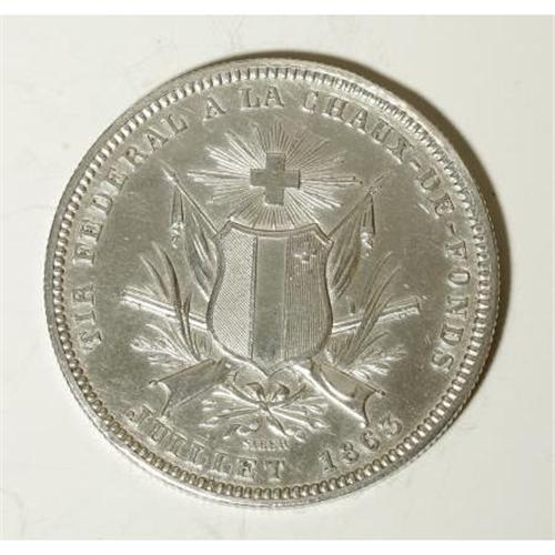 <B>Chaux-de-Fonds. Silver Shooting Taler or 5 Francs 1863,</B></I> heavily cleaned XF.<BR><BR><b>Shipping:</b> Coins & Currency (<a target="_blank" href="http://www.heritageauctions.com/common/shipping.php">view shipping information</a>)
