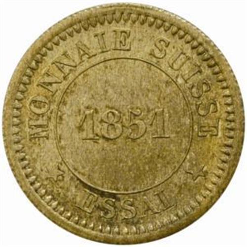 Switzerland. Confederation (1848-). Silvered Brass Pattern Essai 10 Centimes by Merley. 1851.
