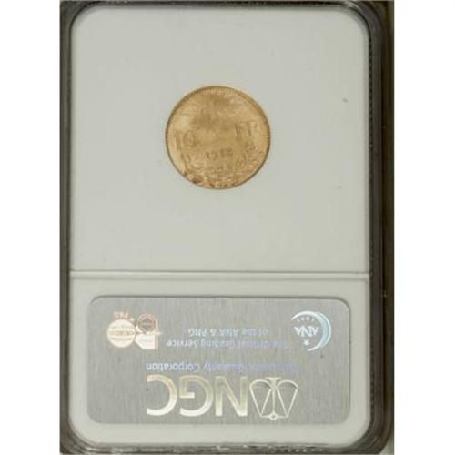 <B>Confederation. Gold 10 Francs 1913-B,</B></I> KM-36, MS63 NGC.<BR><BR><b>Shipping:</b> Coins & Currency (<a target="_blank" href="http://www.heritageauctions.com/common/shipping.php">view shipping information</a>)