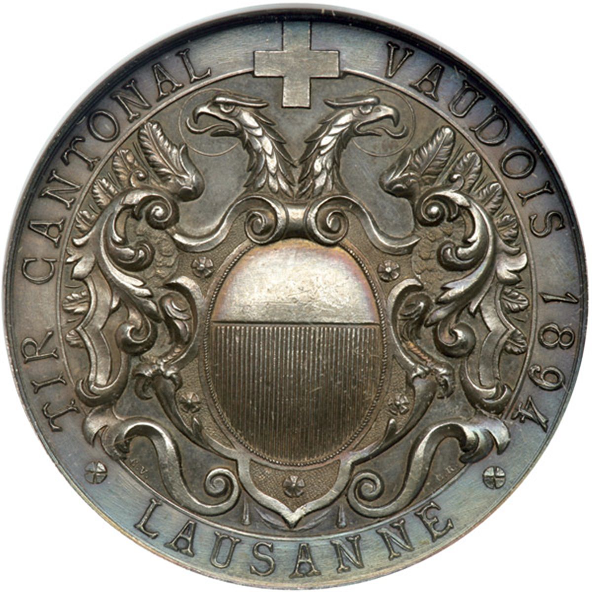 Switzerland. Medal, 1894. R-1591b. Silver. 45 mm. Shooting Festival at Vaud - Lausanne. NGC graded MS-61.