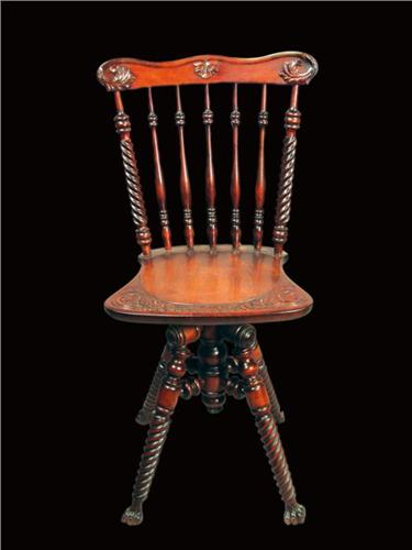 Swivel Seat Stool, cherry wood, spindle barley twist back and claw feet. Excellent refinished condition. 38 inches tall.