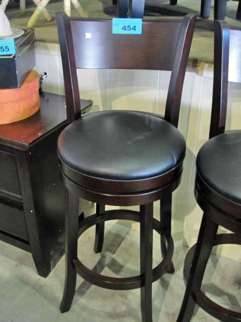 Swivel bar stool with black leather padded seat