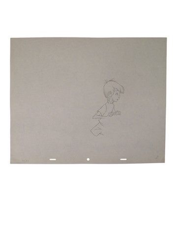 Arthur (nicknamed "Wart"), is the innocent boy who becomes the true hero of Disney's "Sword and the Stone" (1963). This is an original production pencil animation drawing cell of Wart as he listens intently to his teacher, Merlin. It's drawn on registration keyed animation paper, and contains both animator's initials on the lower left hand corner, and the number "3" is written on the lower right hand corner. Comes with a COA. (Approx. 15.5"x12.5")