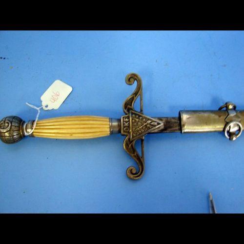 Sword Signed Sonnitzler Sword Signed Sonnitzler, ribbed bone handle, brass bow and arrow marked OKF