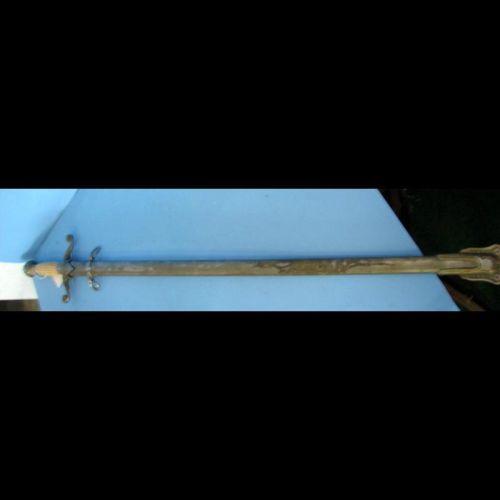 Sword Signed Sonnitzler, ribbed bone handle, brass bow and arrow marked OKF motif hand guard w/ globe finial