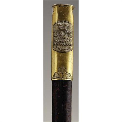 <B>Gilt Metal Sword of the Bodyguard of King William IV (the Sailor King) of Great Britain and Ireland</B></I><BR><I>Circa 1830 </B></I><BR><BR>The scabbard of leather and gilt metal engraved with scrolls, one side applied with a brass plaque bearing the crowned inscription <I>Firmin & Sons Sword Cutters to His Majesty 153 Strand London, </B></I>the steel tapered blade similarly engraved and signed, with gilt metal hilt attached to pommel designed with tassel of silvered thread, one side embroidered with the initials <I>WR</B></I> for William IV, King of Great Britain (1830-37)- 38 1/2 in. long<BR><BR>Provenance:<BR>Purchased from Forsyth's, Nashville, TN<BR><BR><b>Shipping:</b> Requires 3rd Party Shipping (<a target="_blank" href="http://www.heritageauctions.com/common/shipping.php">view shipping information</a>)