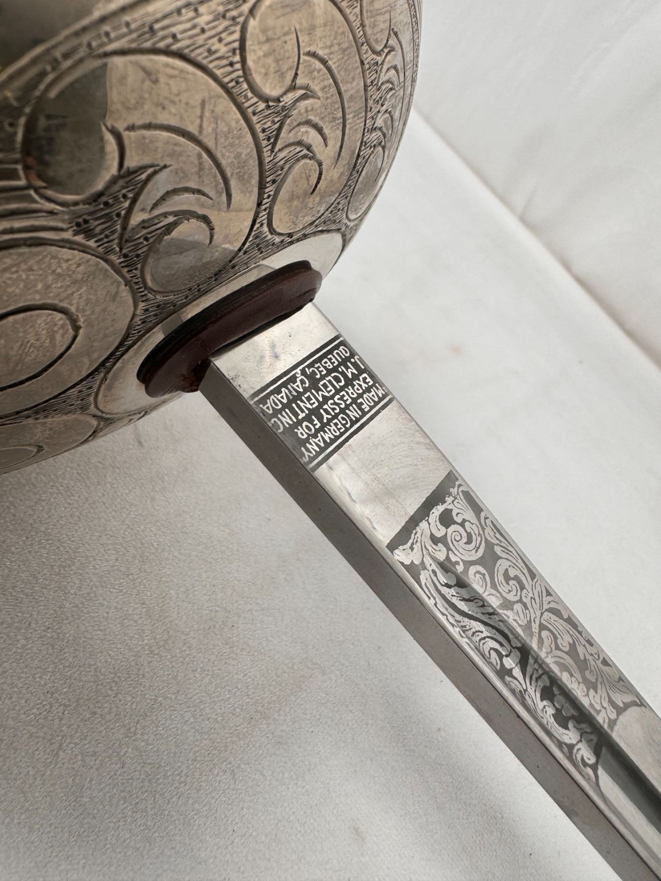 Elisabeth II pattern sword, marked on the ricasso Made in Germany expressly for M.Clement Inc., Quebec, Canada.