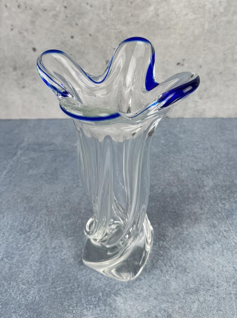 Clear with cobalt blue tips. 11 3/8" by 6" wide.