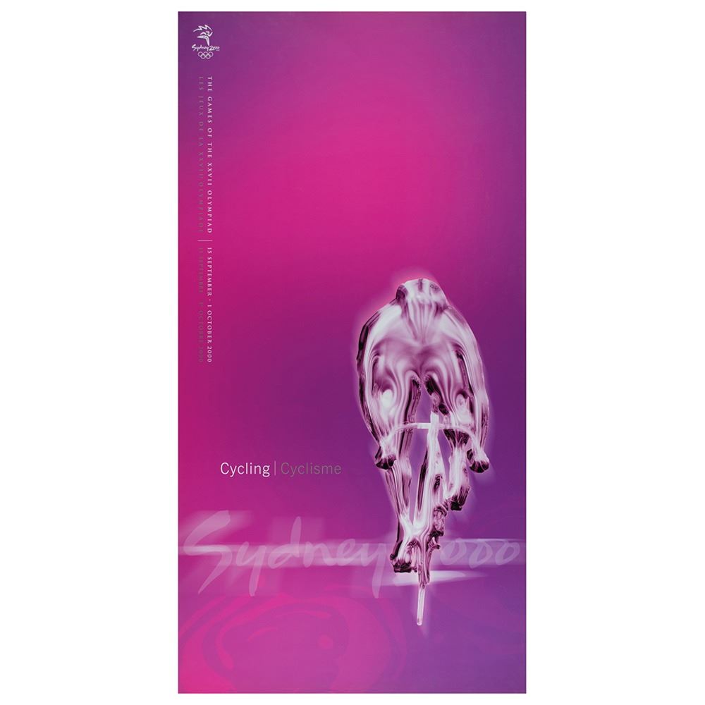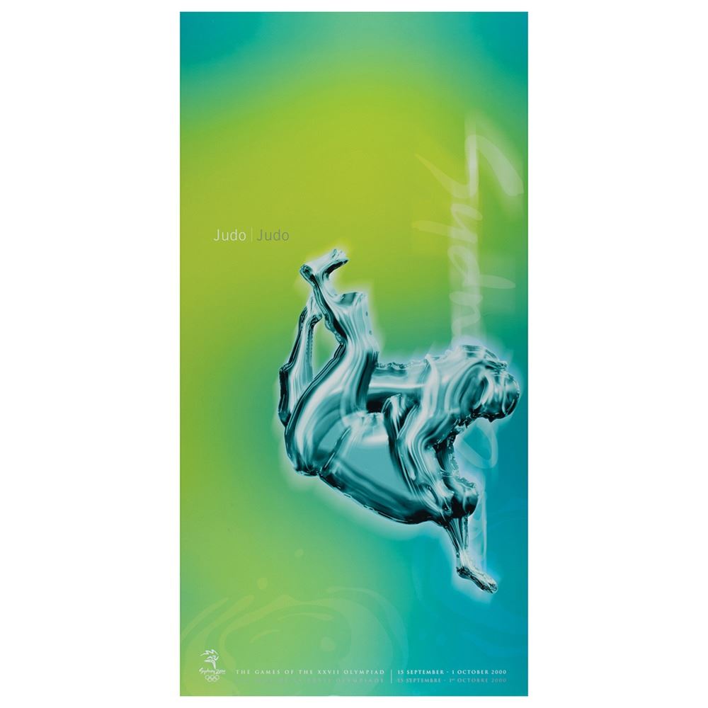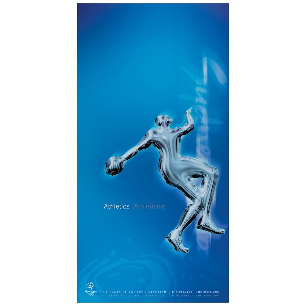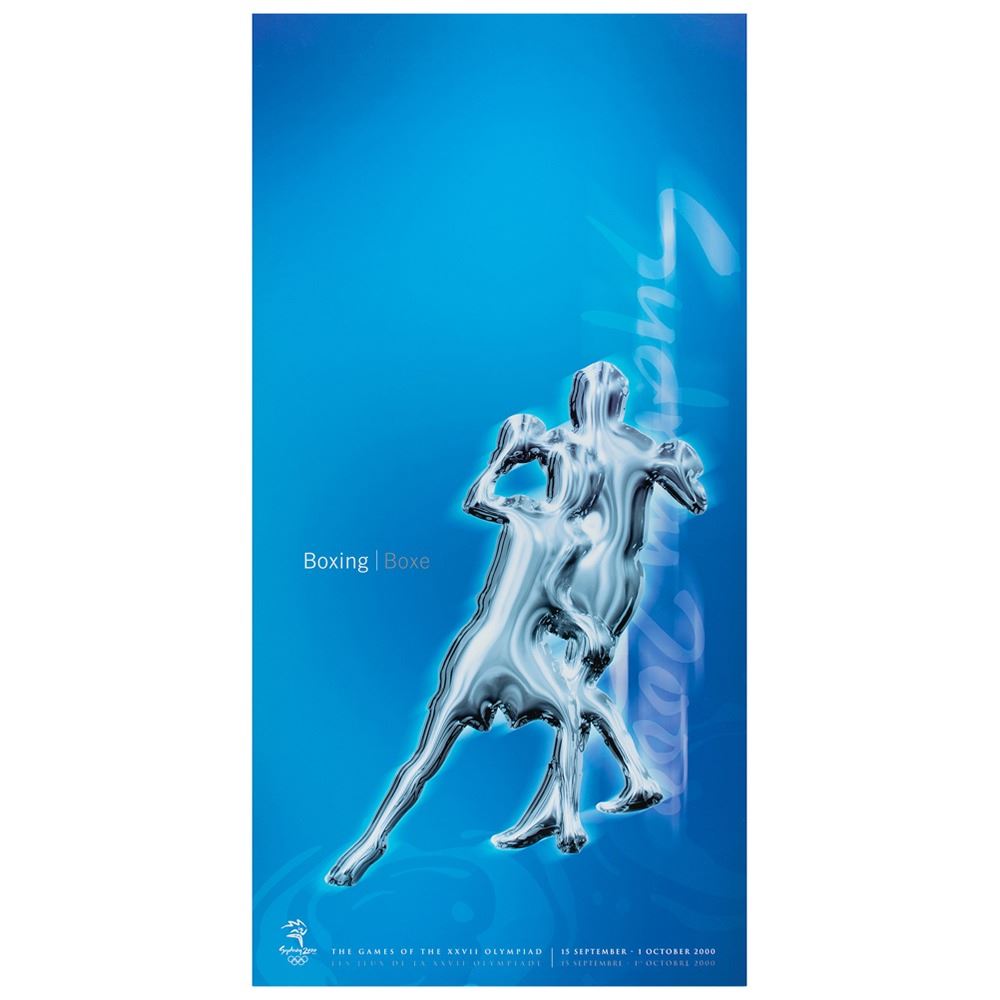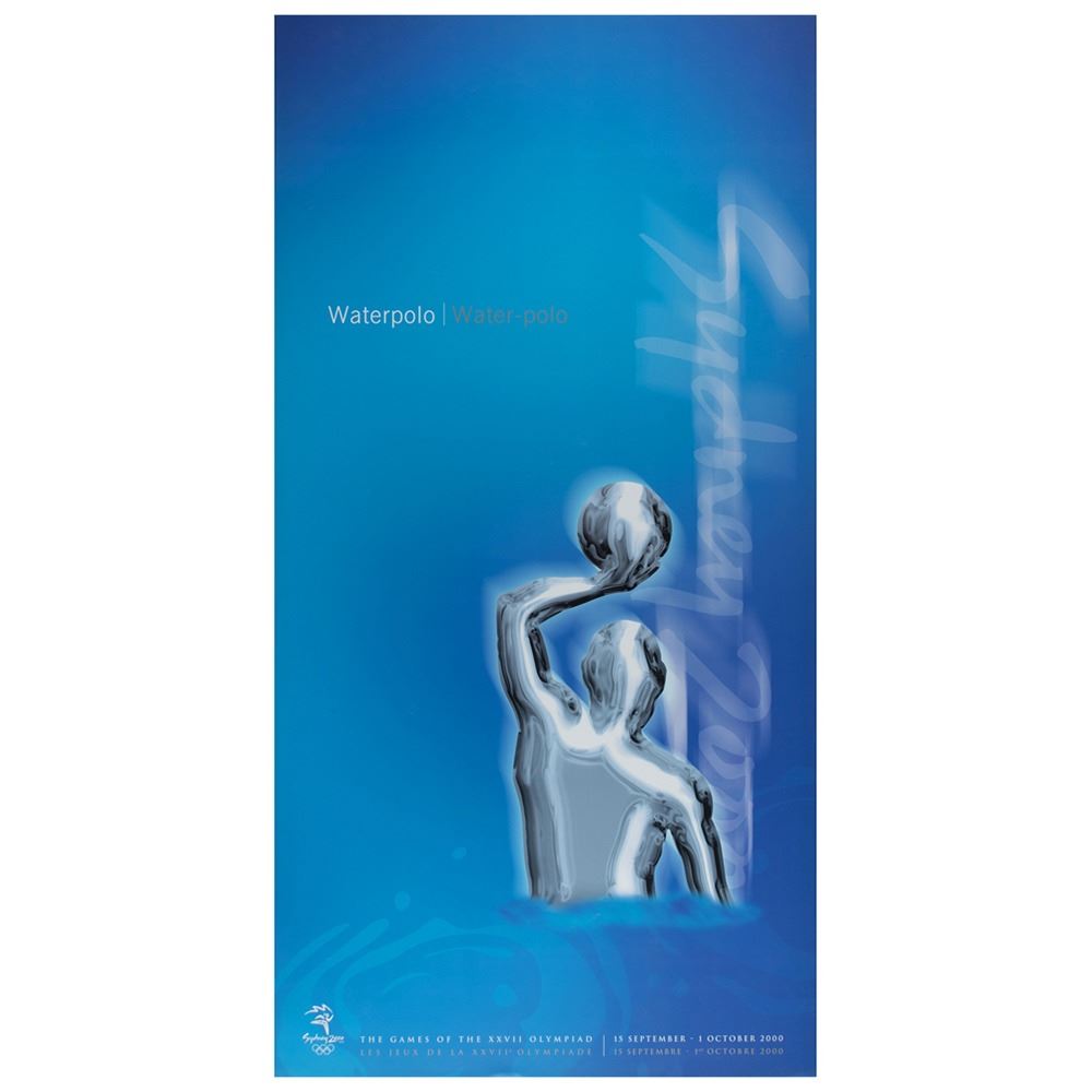 Colorful collection of 31 event posters from the Sydney 2000 Summer Olympics, each measuring 17Ë x 33Ë and featuring stylized metallic images of the Olympic sport, including: Archery, Athletics, Badminton, Baseball, Basketball, Boxing, Canoe/Kayak, Cycling, Diving, Equestrian, Fencing, Football, Gymnastics, Handball, Hockey (Field), Judo, Modern Pentathlon, Rowing, Sailing, Shooting, Softball, Swimming, Synchronized Swimming, Table Tennis, Taekwondo, Tennis, Triathlon, Volleyball, Water polo, Weightlifting, and Wrestling. In overall fine condition, with some light wear or bends to corners or edges. These posters were used in the venues for decorative purposes and were not offered for retail sale.