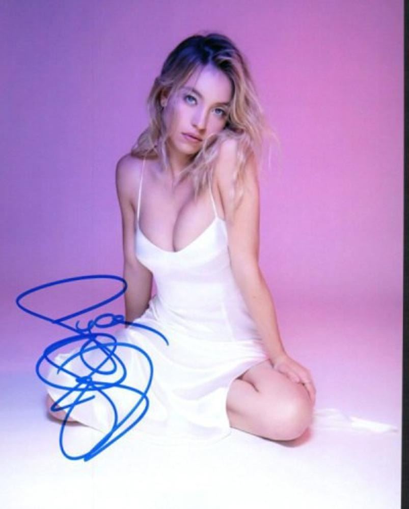 Sydney Sweeney facsimile signed photo. 8x10 inches. This item is a reprint of an original autograph