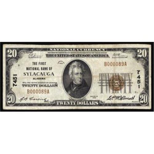 Sylacauga, AL. $20 1929 Ty. 1. The FNB. Ch #7451