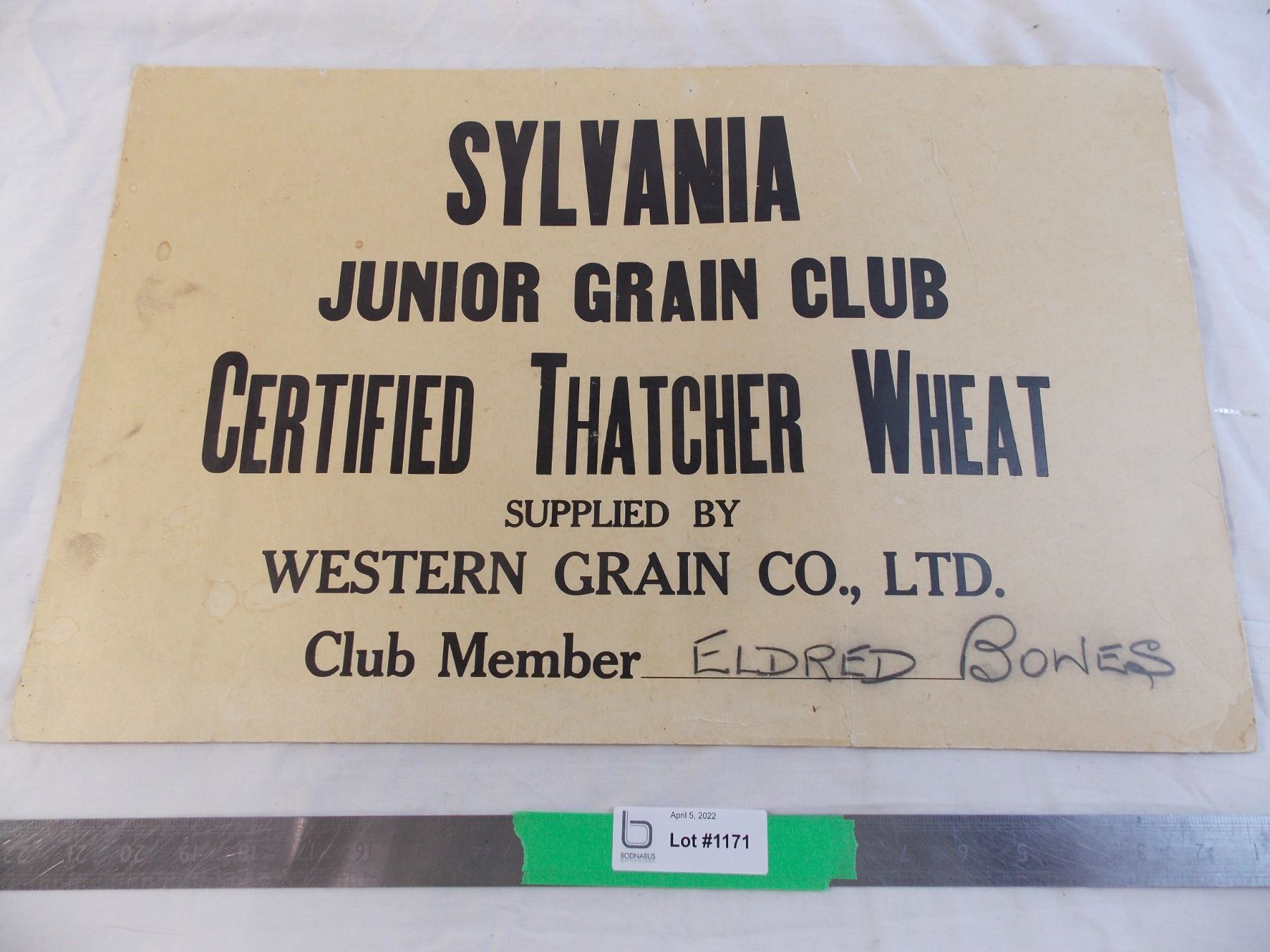 Sylvanian Junior Grain Club certificate - 22" x 14"